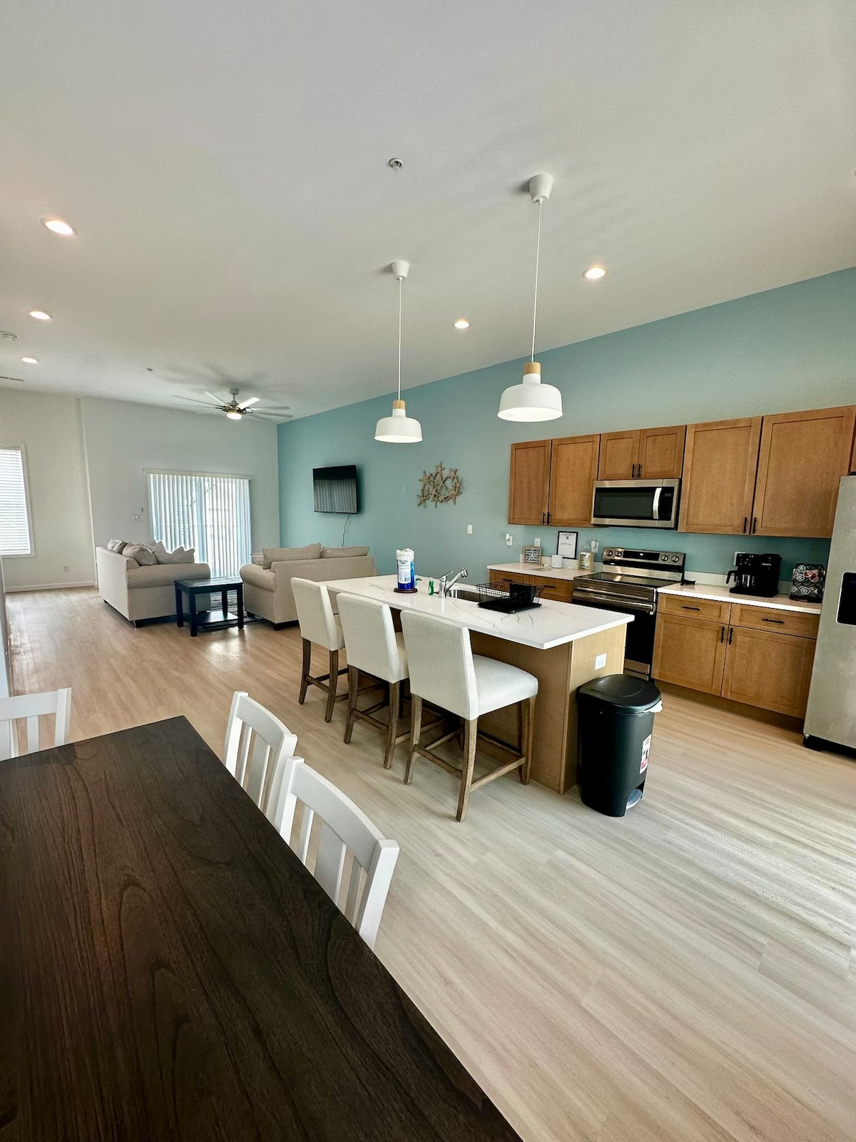 Casa grande y hermosa junto a la bahía en el centro de Ocean City. Disfrute de 3 plantas, 3BR (capacidad para 8 personas), 3,5 baños y un garaje para 2 coches. Cuenta con 2300 pies cuadrados y un plano de piso de concepto abierto, perfecto para extenderse y relajarse. Situado a la vuelta de la bahía, el paseo marítimo, la playa, la pesca, el parque, el parque de patinetas y el restaurante al aire libre junto a la bahía, "De Lazy Lizard", perfecto para ver impresionantes puestas de sol. Balcones privados en todos los niveles para relajarse en las noches perezosas o disfrutar de una taza de café para comenzar el día bien.