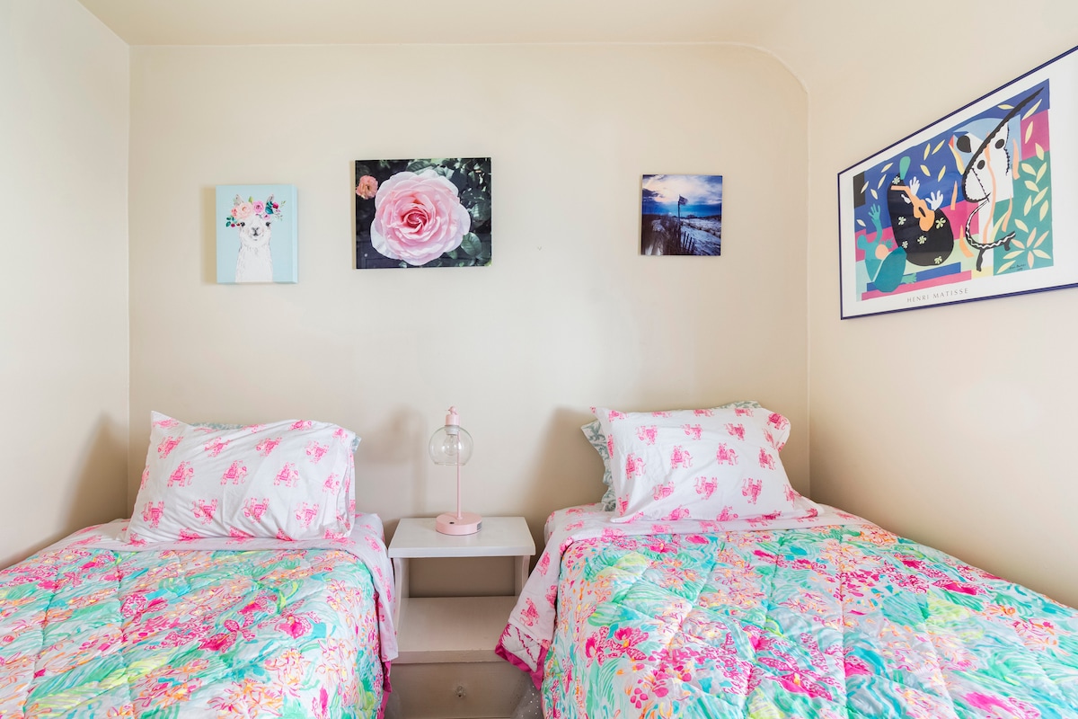 ¡Disfruta de una experiencia relajante en esta casa de playa recién renovada y céntrica! No hay necesidad de conducir. A solo 4 manzanas de la playa o de la panadería Ocean Grove. ¿Quieres pasar una noche divertida? ¡Estarás a 10 minutos a pie de restaurantes y bares en Asbury Park! 3 dormitorios (8 plazas). 2 baños completos. Sala de estar (sofá nuevo y mesa y sillas para 4-6 personas) Porche delantero y patio trasero privado y vallado (parrilla Weber), patio (seccional al aire libre), chimenea, 4 bicicletas y 6 pases de playa (alquileres de verano).