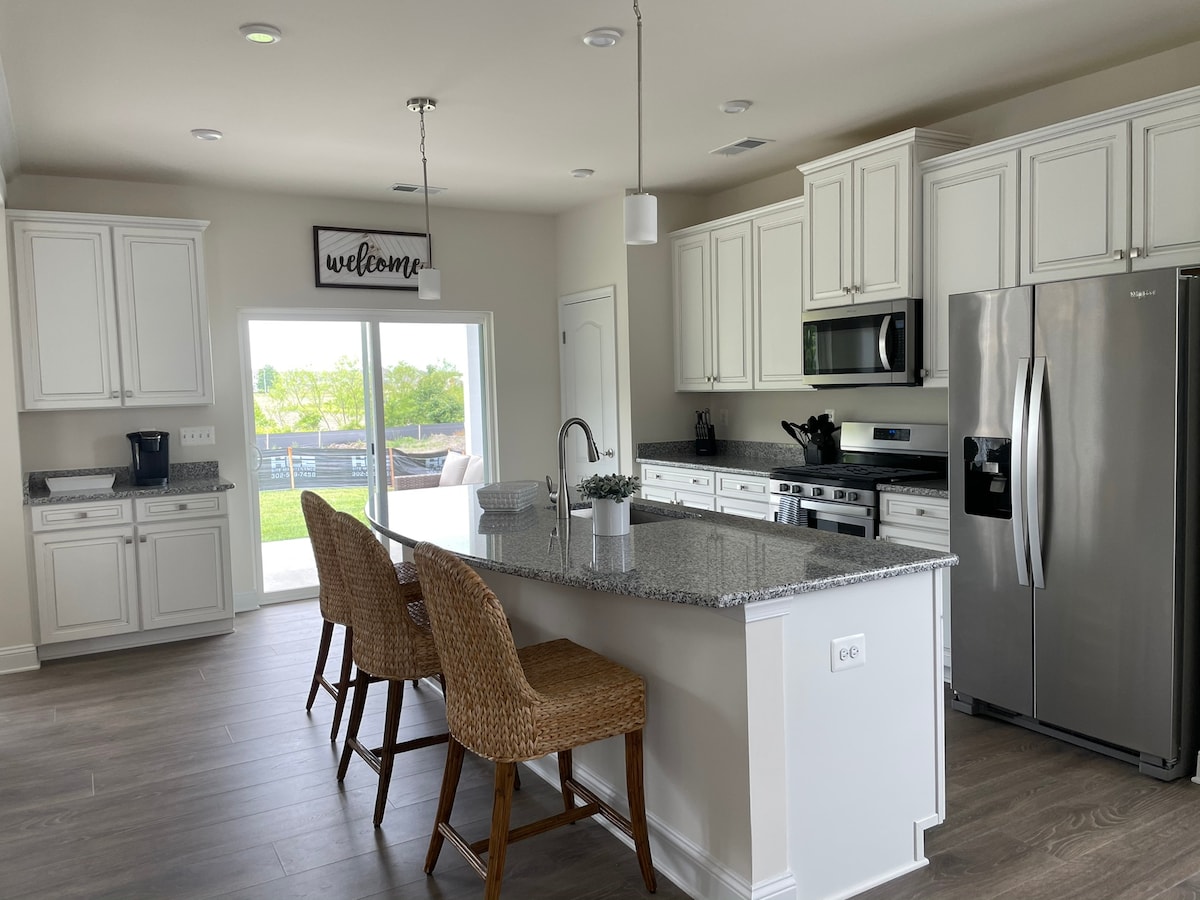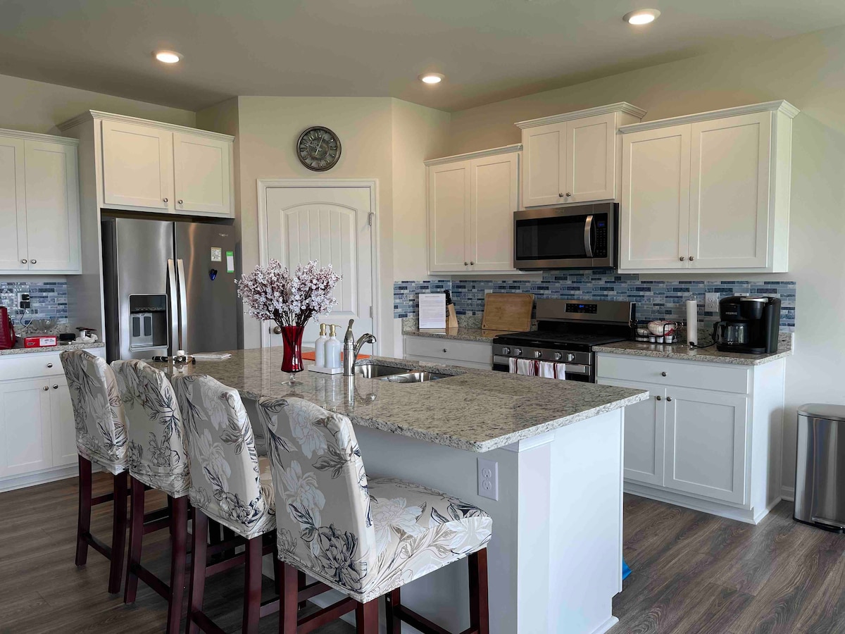 Disfruta de nuestra casa de 2 pisos y más de 2800 SF, con todos los servicios que necesitarás para unas vacaciones sin estrés. Nuestra casa de 5 dormitorios y 3 baños es perfecta para que tu familia disfrute con toda la nueva decoración moderna, colchones de espuma viscoelástica, una sala de cine/media de 6 asientos y vista de primera fila de nuestro gran estanque. La piscina (de temporada), el gimnasio, el parque infantil y la cancha de tenis se encuentran en terrenos comunitarios ubicados al otro lado de la calle. Nota: hay una política de alquiler mínimo de días. Y los descuentos mensuales solo están disponibles durante los meses que no son de verano