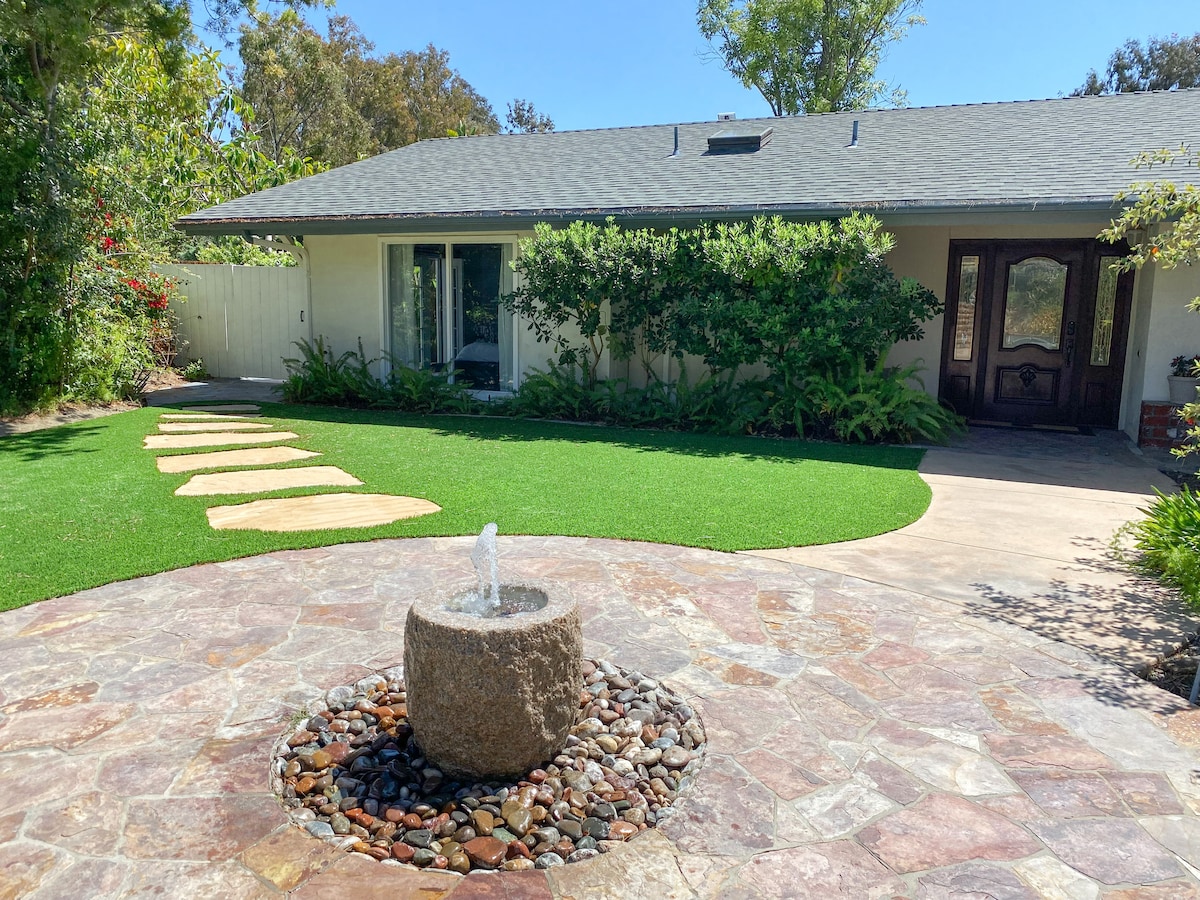 Ubicado en medio de un exuberante y tranquilo barrio de alta gama, le damos la bienvenida a su hermoso oasis privado junto al mar. La entrada privada de la suite se abre a tu propio espacio al aire libre exclusivo con barbacoa, chimenea y zona de estar con fuente. El diseño de lujo incluye una cama tamaño king Cali, bañera de hidromasaje con ducha de efecto lluvia y una pequeña cocina con nevera, microondas y barra comedor equipada. A solo 3 millas de la playa, la suite ofrece una ubicación prístina combinada con privacidad y relajación.