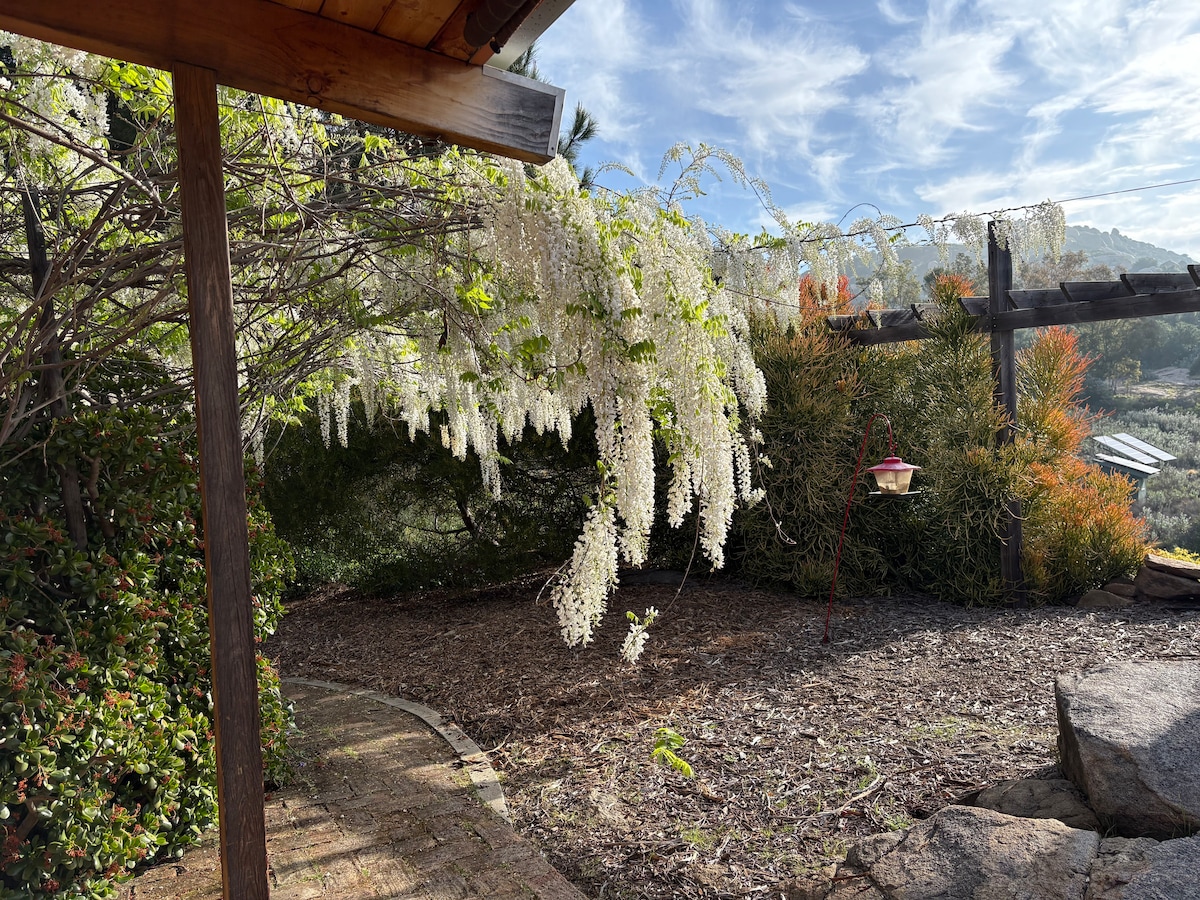 Relájate y disfruta de los tranquilos alrededores de esta encantadora casa de campo en 5 acres con huertos en la zona rural de San Diego. Esta es una construcción totalmente nueva y todo está impecable. Cerca de la montaña Palomar, Julian, Temecula, casinos, parque de animales salvajes, bodegas, cata de vinos, restaurantes locales. El centro de San Diego o las ciudades costeras están a 30-45 minutos.