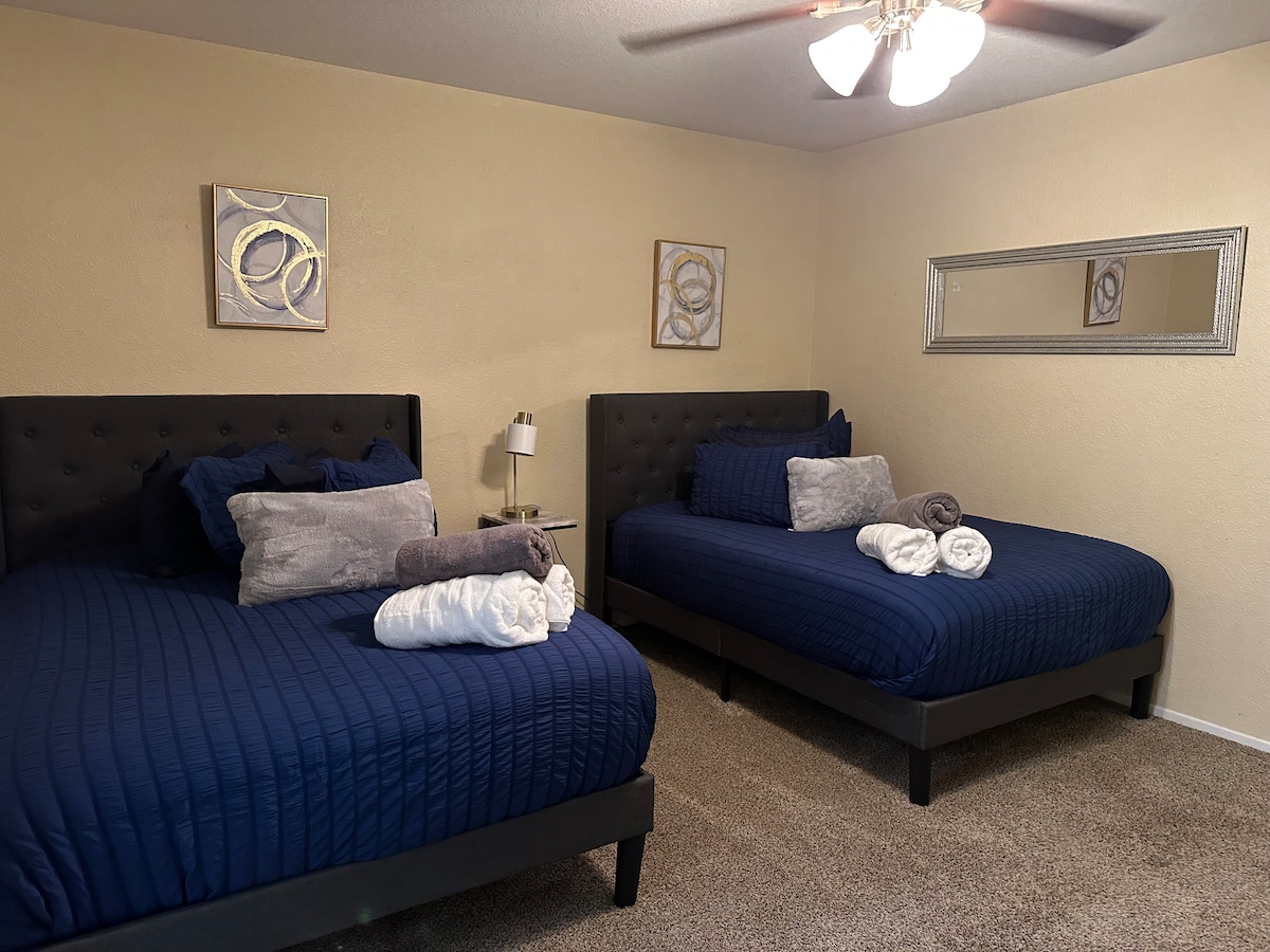 Ven a relajarte y alójate en nuestra casa familiar recién reformada. Cerca de muchos restaurantes y parques, este es tu hogar perfecto lejos de casa. Se incluye una sala de juegos dedicada bajo aire acondicionado con juegos tanto para niños como para adultos. Nuestra hermosa casa cuenta con techos de 12 pies y 2000 pies cuadrados de sala de estar. Trae a toda la familia o simplemente a tus compañeros de trabajo, ya que hay mucho espacio para todos.