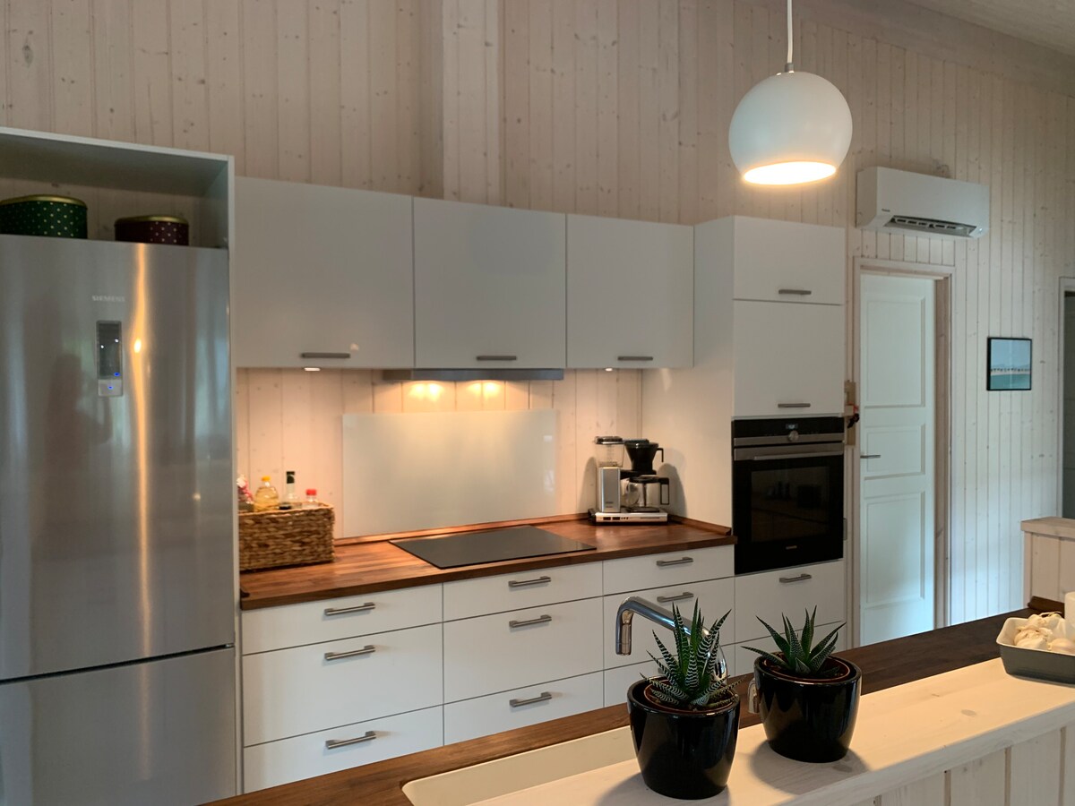 Encantadora casa familiar. Sauna, playa, zona de comidas.