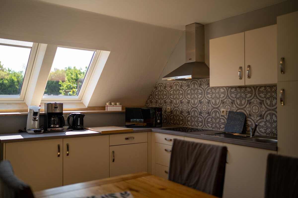 Vous vous sentirez « comme à la maison » dans un appartement récent à la décoration soignée, situé dans une grange rénovée datant du début du 20ème siècle. L’accès se fait par le chartil et l’appartement indépendant se situe dans notre cours. Vous pourrez garer gratuitement votre véhicule dans les rues adjacentes.