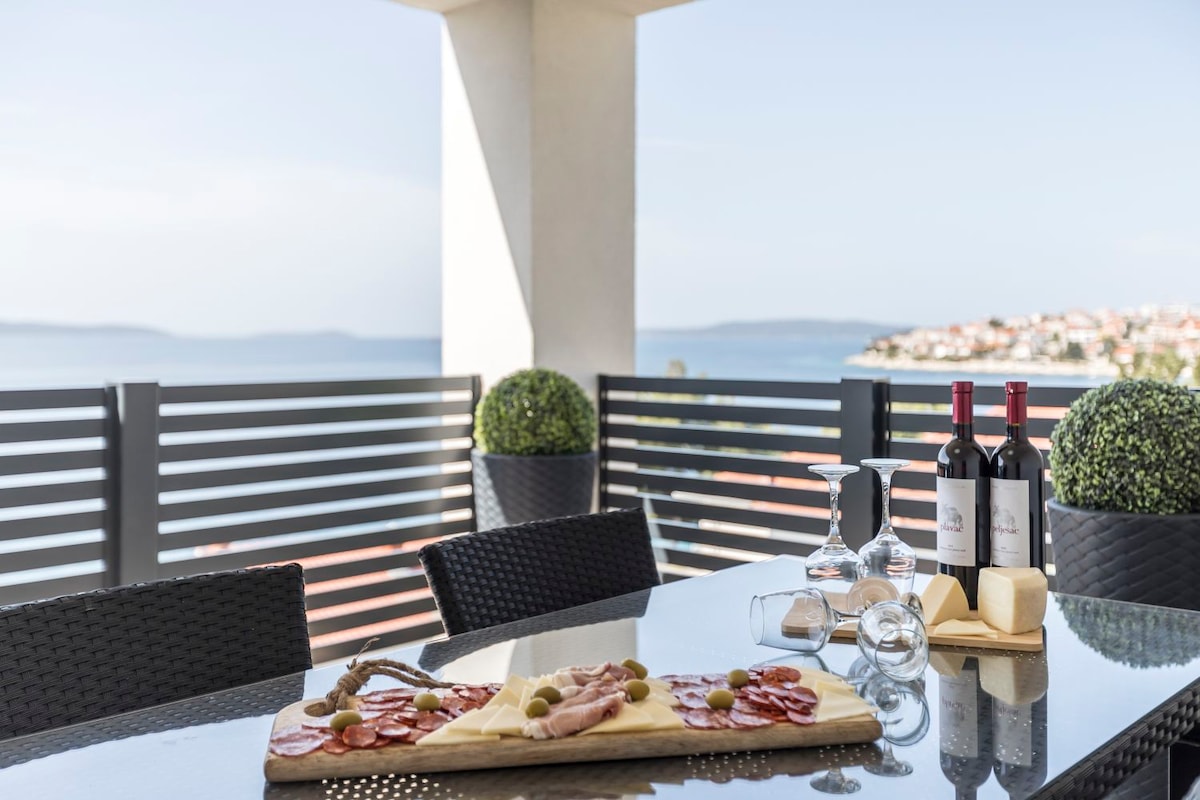 Royal es un apartamento nuevo, moderno y lujosamente renovado con jacuzzi, a 50 metros de la playa. Tiene 50 metros cuadrados y una terraza de 30 metros cuadrados. Cuenta con 2 dormitorios, sala de estar, cocina totalmente equipada con comedor, baño con gran ducha, barbacoa, garaje (1 coche), TV de pantalla plana en todas las habitaciones y wifi gratuito. Ofrece una gran terraza con vistas al mar abierto y a las islas circundantes. Se puede disfrutar del buceo cerca. Trogir está a 5 km y el aeropuerto de Split a 8 km del alojamiento.