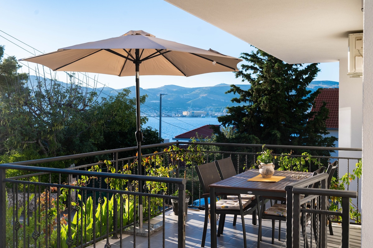 El apartamento es único por su inestimable vista al mar y su hermosa terraza (20 m2) donde los huéspedes pueden sentarse o tomar el sol y disfrutar de las vistas de las islas circundantes como Šolta, Brač, Hvar, Drvenik... El apartamento está situado en una primera planta con entrada independiente incluida. Consta de dos dormitorios, baño, sala de estar con comedor y cocina. Acogedor y decorado, te proporciona un ambiente íntimo.