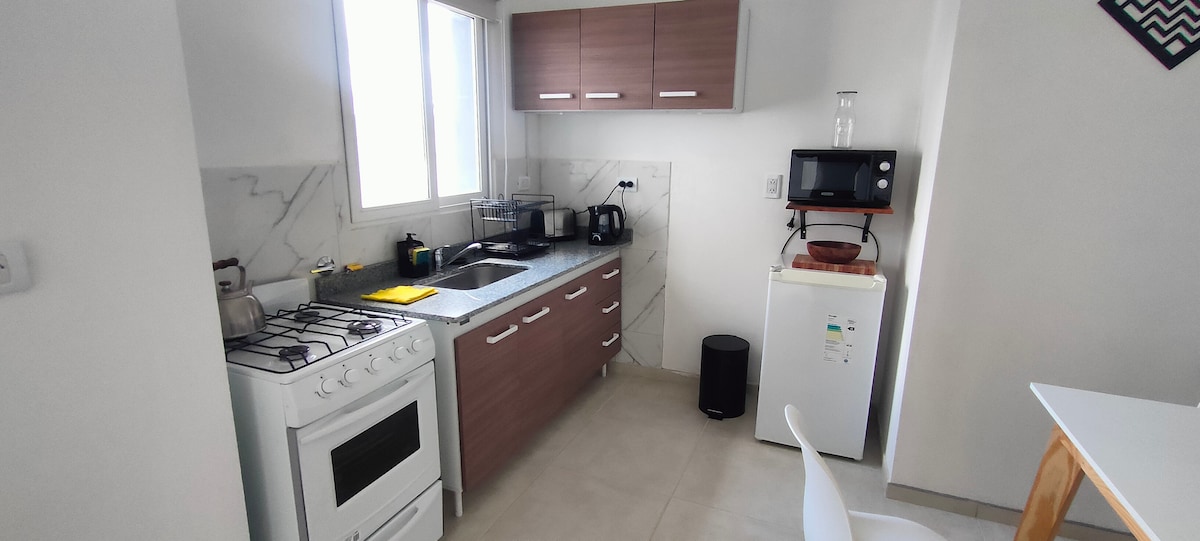 Disfrutá de la comodidad y sencillez de este alojamiento tranquilo y céntrico. Equipado con todo lo que necesitás para una grata estadía. Departamento nuevo en primer piso (acceso por escalera) en una muy buena ubicación. Dispuestos a atenderte de la mejor manera.