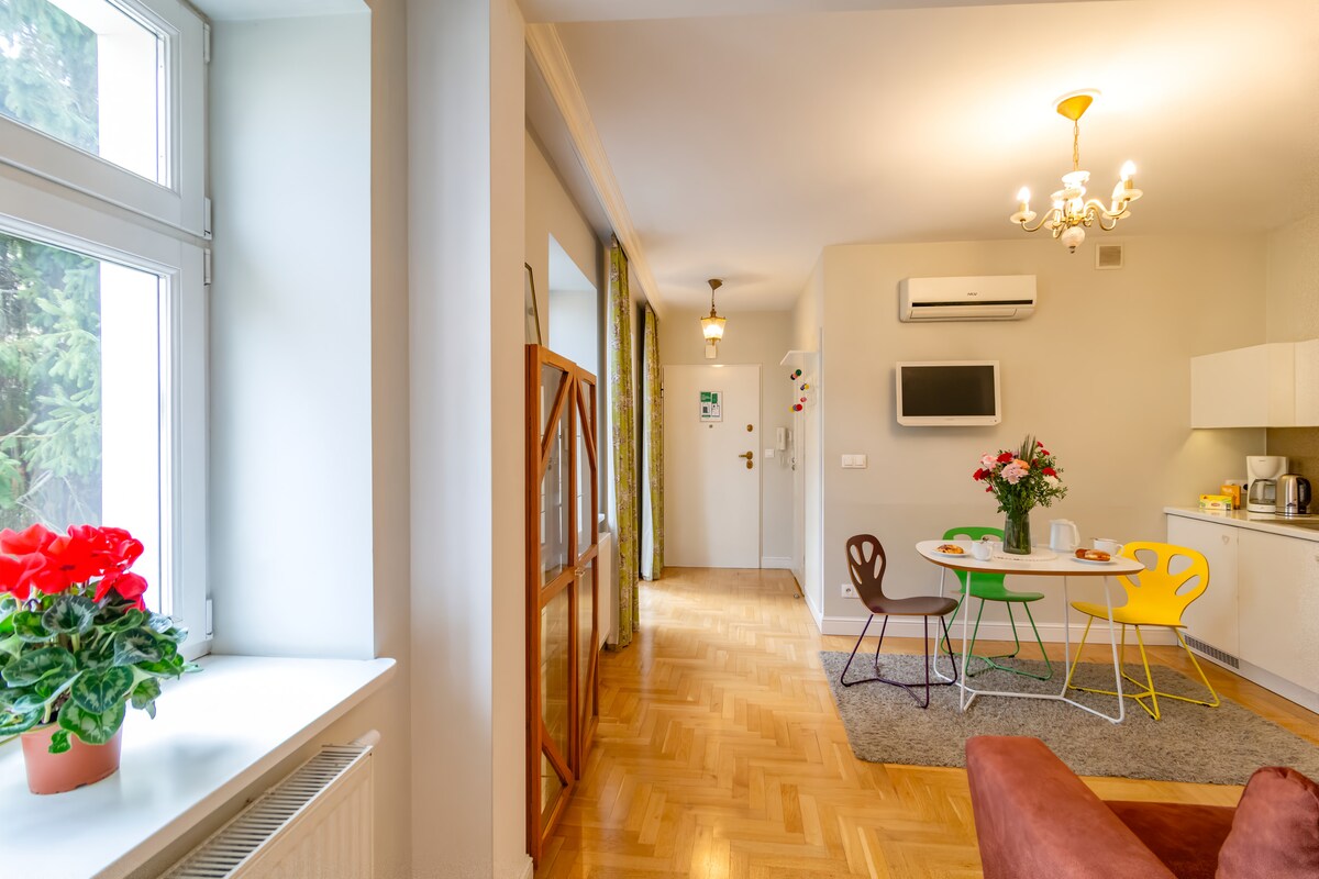 Auténtico, elegante y espacioso apartamento (55 m2) con techos altos (3,70 m), muebles antiguos bellamente restaurados, cómoda cama tamaño king, muebles de cocina hechos a medida con encimera de mármol. ¡Un piso de verdad, no un hotel! Situado en una casa adosada del siglo XIX con vistas en el corazón de Podgórze. 1 dormitorio, sala de estar, wifi gratuito, TV de pantalla plana vía satélite de 40 pulgadas, lavavajillas, cocina, horno, nevera, plancha, lavadora, secadora, secador de pelo. ¡Un verdadero hogar lejos de casa! ¡Te encantará! ¡A nuestros huéspedes les encanta!