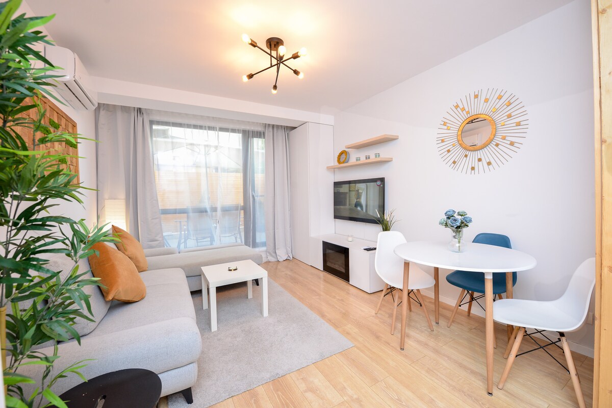 Cómodo y moderno apartamento con impresionantes vistas desde el balcón, ubicado cerca del centro de la ciudad (a 1 minuto de la estación de metro Mihai Bravu), con un jardín en la azotea y gimnasio gratuito para todos los huéspedes. Aparcamiento gratuito en las instalaciones del edificio. El apartamento está equipado con calefacción por suelo radiante y todas las comodidades necesarias: - Lavadero - Televisor inteligente HD (Netflix incluido) - Cafetera. - Plancha para ropa -Perchas - Sábanas limpias -Toallas - Productos de limpieza - Cubiertos. - Platos - Vasos - Sartenes y ollas