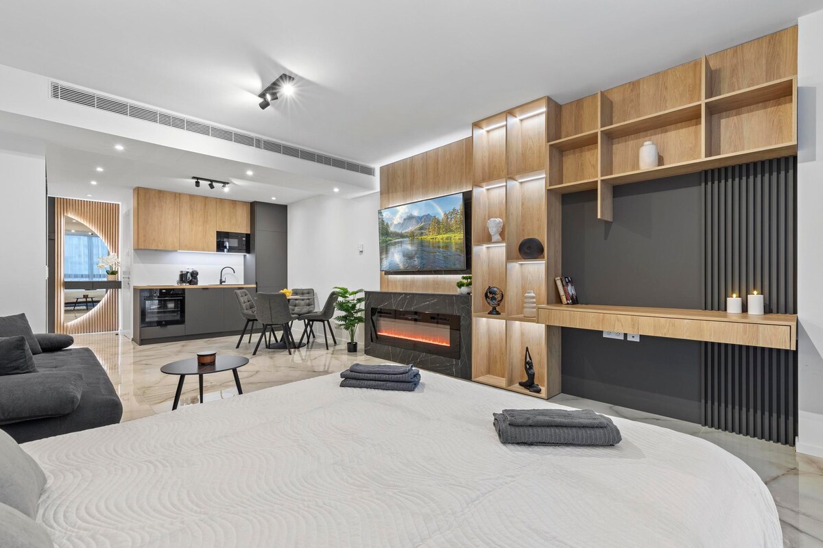 Disfruta de Bratislava desde este lujoso estudio Eurovea Riverside, perfectamente diseñado para una estancia con estilo. Con interiores elegantes y un diseño acogedor, es ideal para parejas o viajeros solitarios. Ubicado justo en el Danubio y directamente conectado con el centro comercial Eurovea, tendrás las mejores tiendas, restaurantes y vida urbana a la vuelta de la esquina. Comodidad premium en la ubicación más buscada de la ciudad junto al río.