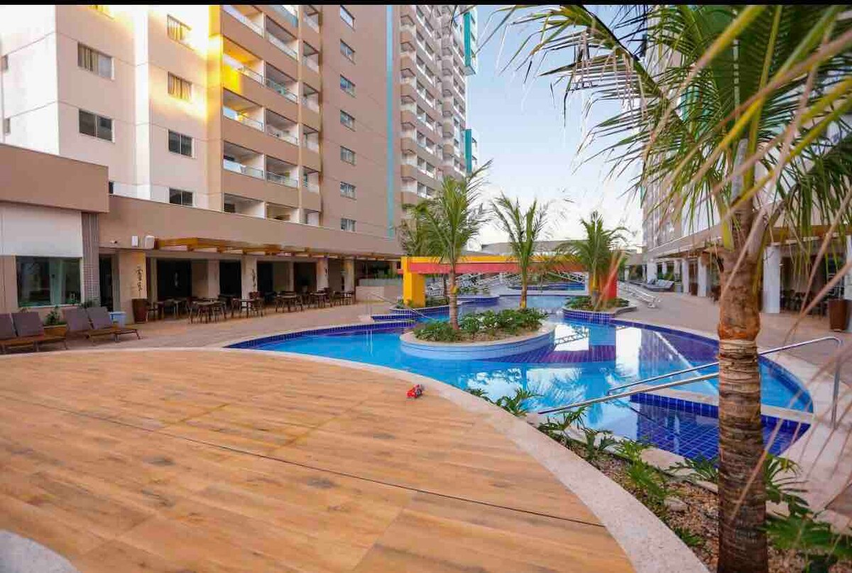 El Resort es muy bueno. Se encuentra a solo 7 minutos a pie del Parque Thermas dos Laranjais (considerado el tercer parque acuático más visitado del mundo). Hay recreación de 10:00 a 22:00 todos los días. Cuenta con piscinas climatizadas, un gimnasio supermoderno, cine, restaurante y bar junto a las piscinas, buenas zonas de recreo para los niños y un confort y comodidad fuera de lo común. ¡No pierdas el tiempo, ven a disfrutar de este paraíso!