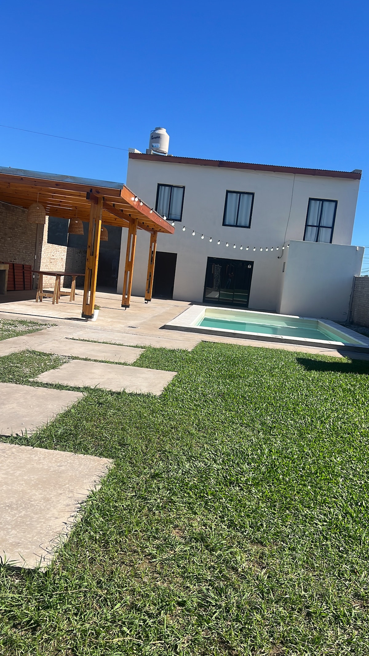 🏡 ¡Casa de campo entera con pileta! 🛌 2 Habitaciones + 2 Baños (uno en suite). ❄️ Aire acondicionado gigante nuevo en el living cocina conedor y en ambas habitaciones. 🛀🚿 Bañera y ducha con excelente presión de agua fria y caliente. 👨🍳 Cocina completa con horno, parrillero gigante, fogonero y disco de arado grande para cocinar lo que el campo te inspire ! Además tenes licuadora, cafetera, tostadora y pava eléctrica. 💦🏊 ¡Pileta en la casa!