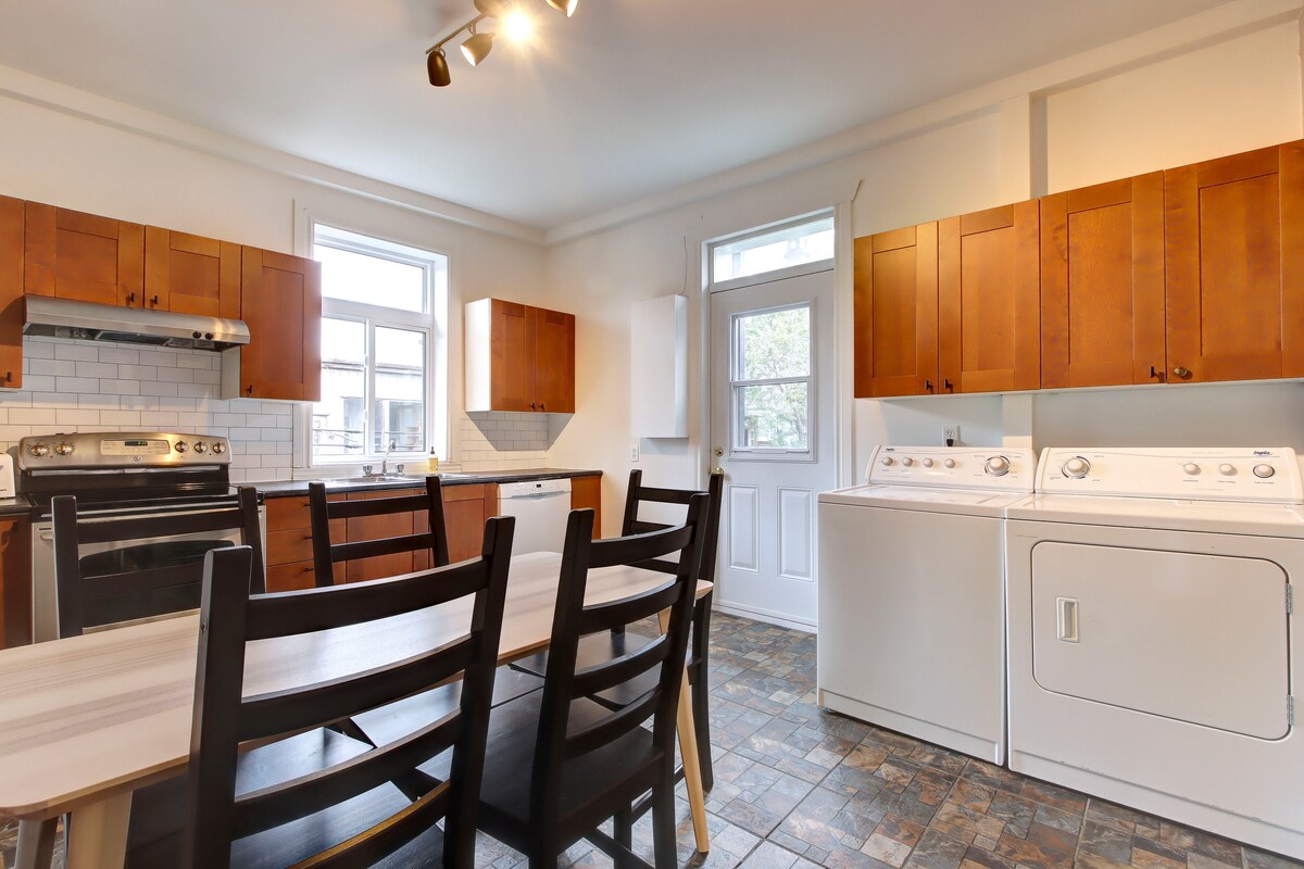 Descubre la auténtica vida de Montreal en este hermoso departamento totalmente renovado ubicado en Hochelaga ⚘ ✧ Un espacio de estacionamiento privado incluido ✧ Tres dormitorios que ofrecen total privacidad y camas cómodas. ✧ Cocina totalmente equipada. Cafetera ✧ Nespresso® Vertuo Zona de trabajo ✧ cómoda. Wifi ✧ ultrarrápido y confiable. Televisión ✧ inteligente con funciones de streaming. ✧ Hermosos balcones delanteros y traseros. La estación de metro✧ Joliette está a solo 5 minutos a pie.