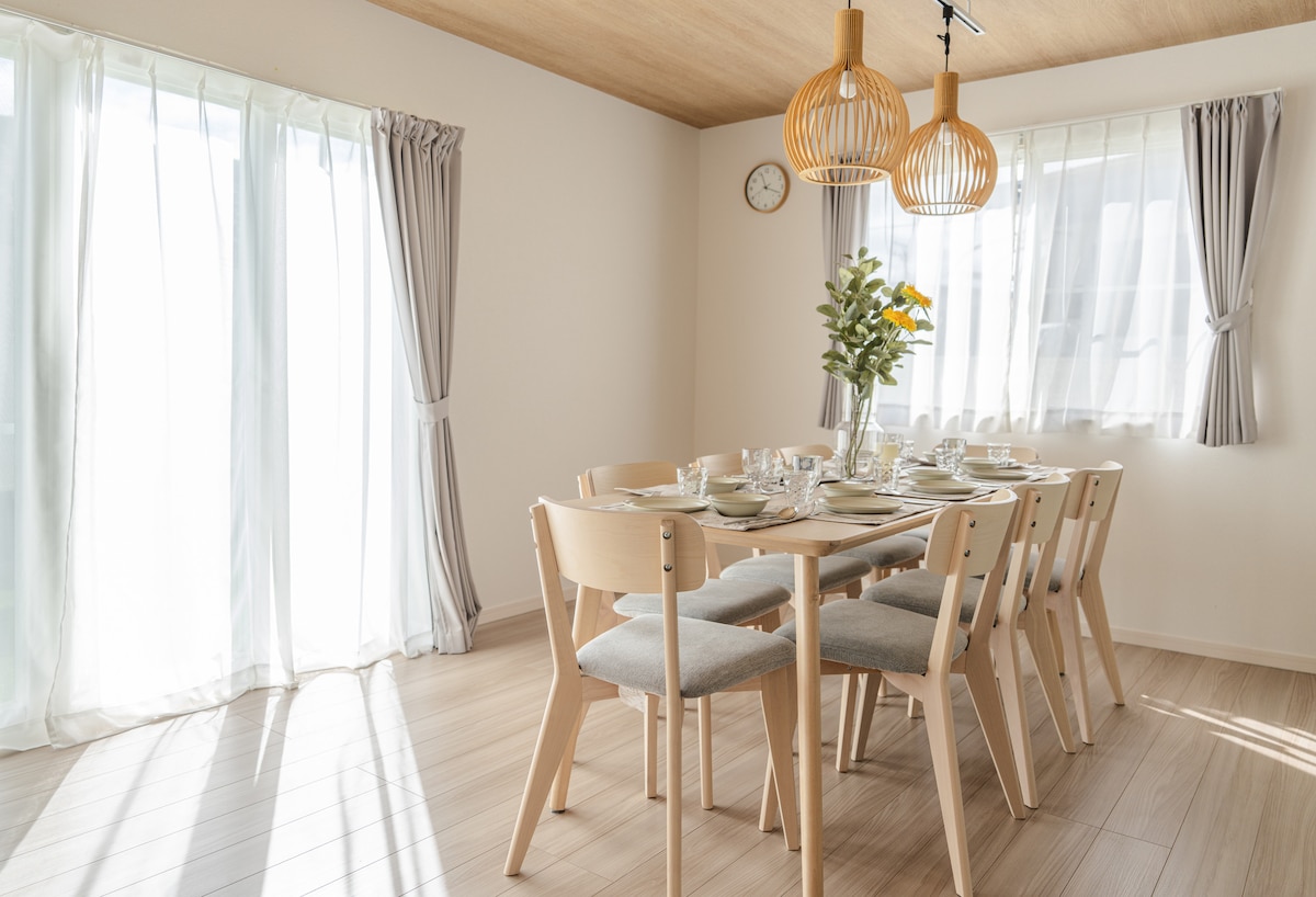 Alójate en la habitación de invitados totalmente privada de una casa de madera completamente nueva en Azumino, con su propia entrada, cocina, baño y otros servicios importantes. Aunque forma parte de nuestra casa familiar, es completamente independiente y no tiene espacios compartidos. Disfruta del registro automático con cerradura inteligente, un cálido interior de madera y tranquilas vistas al bosque cerca del santuario de Hotaka, la granja Daio Wasabi, el monte. Ariake, Azumino Art Line y los centros de esquí de Hakuba: tu refugio de montaña fresco, privado y convenientemente ubicado.