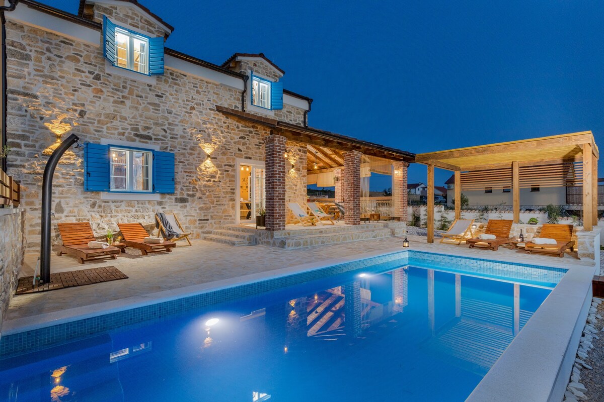 Esta nueva villa está situada en una ubicación tranquila cerca de playas, restaurantes, supermercados y bares. La casa consta de dos dormitorios, salón comedor, cocina totalmente equipada y baño. Las habitaciones tienen aire acondicionado y la piscina es privada. Nuestros huéspedes cuentan con estacionamiento gratuito, wifi y barbacoa. El parque nacional de Krka y el parque nacional de Kornati se encuentran en nuestros alrededores.