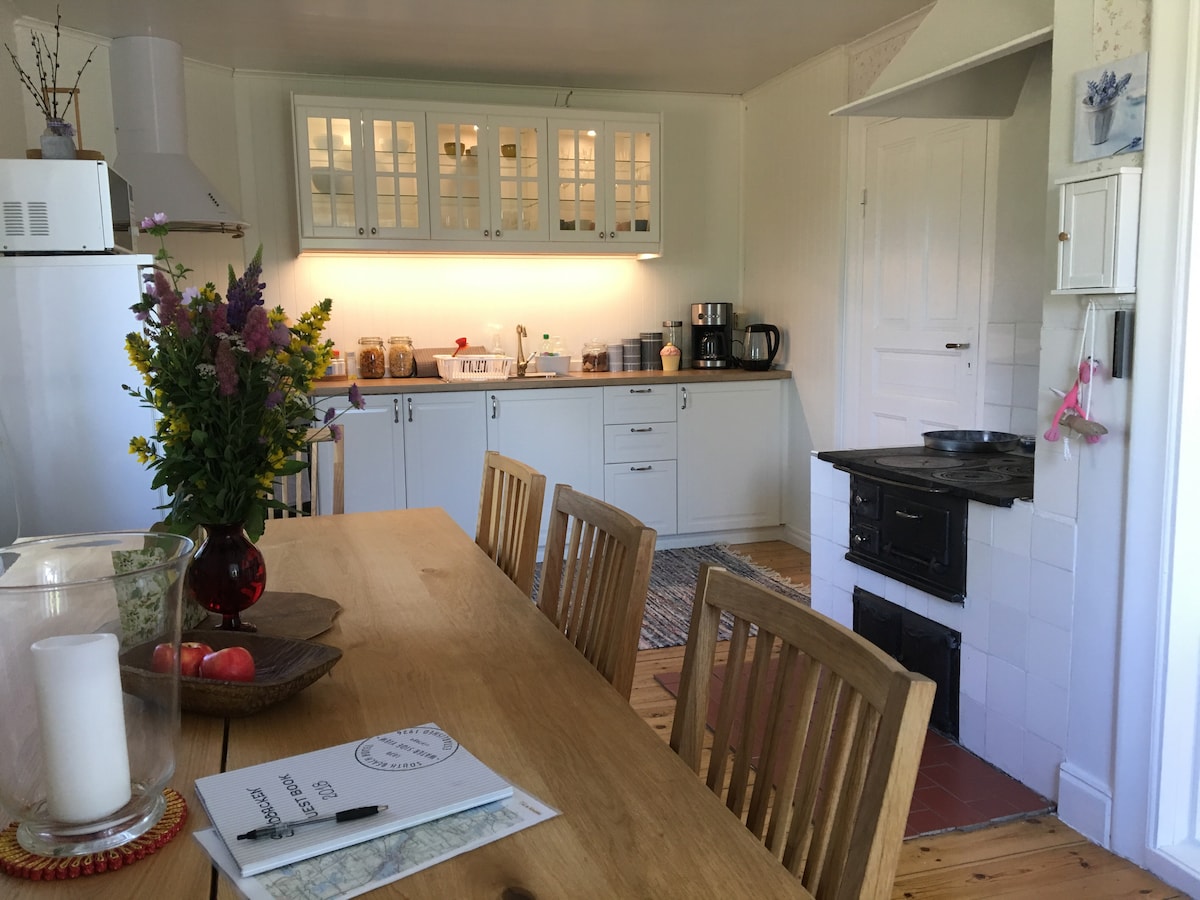 ¿Te gusta mirar por la ventana y ver un prado salvaje que conduce a un lago? ¿Mientras comes una tostada con mantequilla y tomas tu primer café recién hecho del día? Supongo que te gustará aquí. La pequeña casa roja está a unos 90 metros del Spannsjö, en cuyas orillas mi granja es la única propiedad inmobiliaria. Tu pequeña casa roja tiene todo lo que necesitas, sin importar la temporada: dormitorio con 4 camas, sala de estar, baño, cocina totalmente funcional y tu propia lavadora. Hay wifi en la casa.
