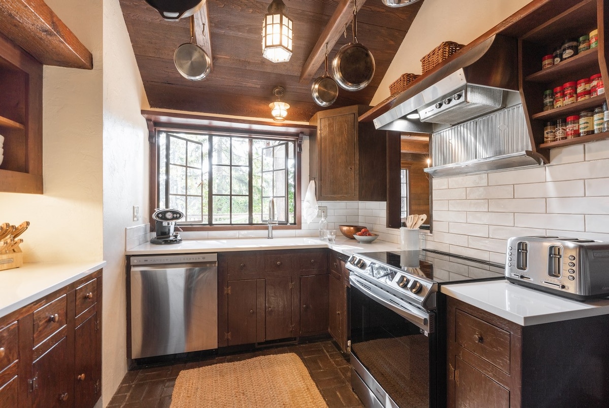 Una casa única enclavada en las colinas boscosas de South Eugene, diseñada por el arquitecto como su chalet personal lleno de madera natural, roca y dos chimeneas. Cerca de la ciudad y a solo 2 millas de la Universidad de Oregón y del Lane College, con rutas de senderismo y ciclismo cerca. Nuestro alojamiento se encuentra en un barrio muy tranquilo y esperamos que nuestros huéspedes lo respeten. Si planeas celebrar una fiesta, busca otro alojamiento.