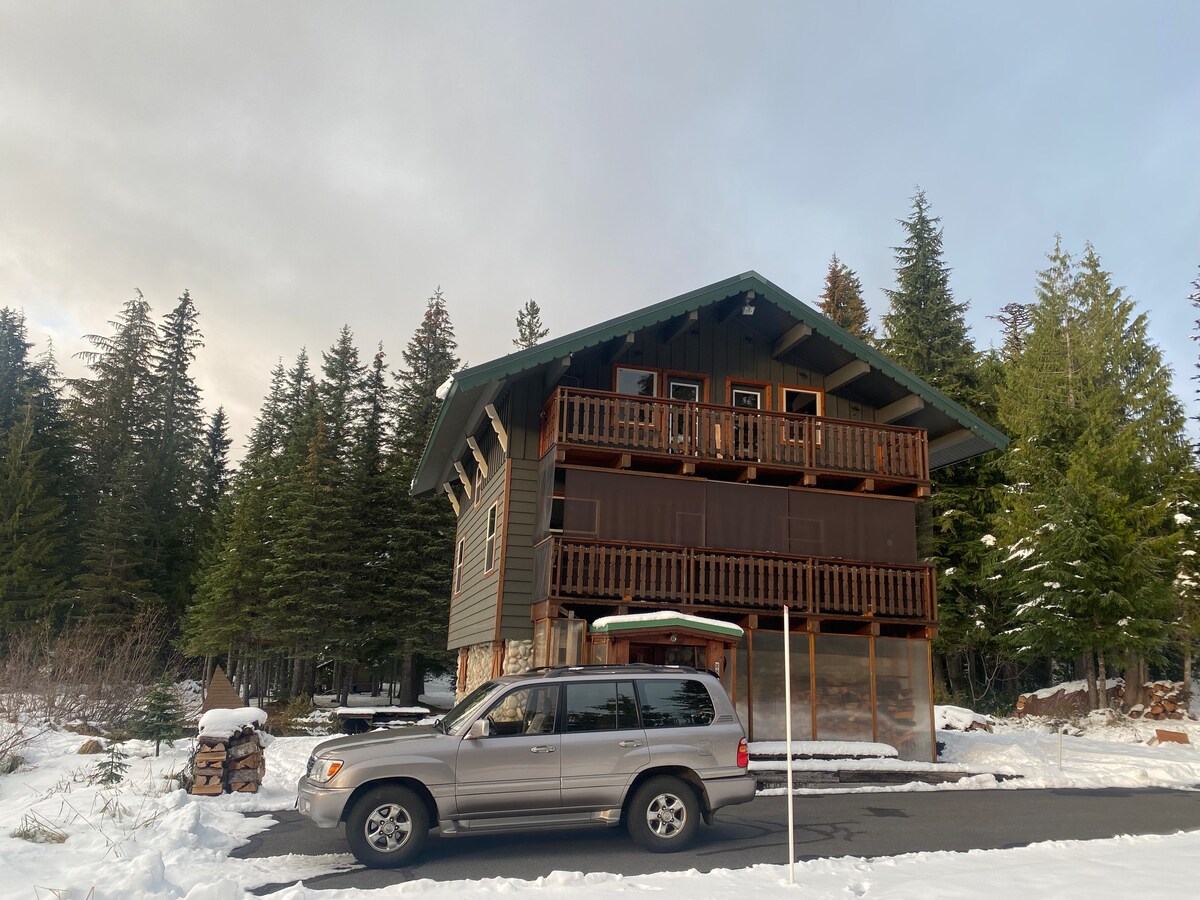 Nuestro acogedor chalet de 3 dormitorios y 2 baños se encuentra a solo 20 minutos de Timberline, a 30 minutos de Meadows y a 1 hora de Portland. A pocos pasos del río Salmon y a poca distancia en coche de muchos lugares de senderismo/ciclismo de montaña. Cerca del centro vacacional en el campo de montaña/golf. Relájate en el jacuzzi después de explorar el monte Capucha o acomódate junto a la chimenea de leña. Juegos de mesa, rompecabezas y sistema de juegos Super Nintendo. WIFI gratuito y rápido. La sala de barro está lista para tu equipo de esquí húmedo y tablas de paddle.