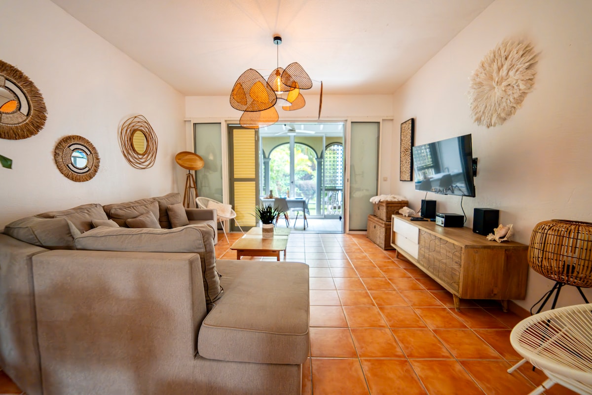 El «estudio SeaBird» está idealmente situado con unas vistas maravillosas al mar Caribe y ¡una playa idílica solo para usted! Ofrece mucha comodidad y almacenamiento con una decoración refinada y original. La residencia está perfectamente asegurada con una gran piscina y jardín tropical. Todo está a poca distancia: tienda de comestibles, mercado local, tiendas, restaurantes tradicionales o gastronómicos, estación marítima a otras islas, etc. Wifi de alta velocidad y TV Europa y América.