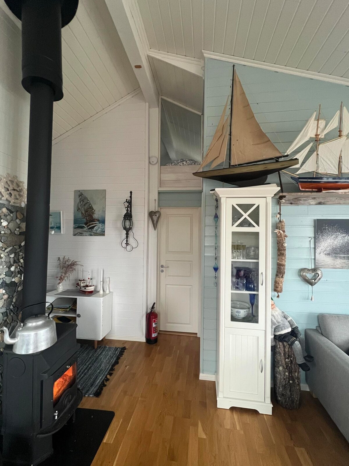 ¿Quieres hacer una pausa de la vida cotidiana? ¡Disfruta de hermosos atardeceres y estar de cerca! La cabaña se encuentra al final de un camino sin salida, ubicación sin obstáculos con vistas panorámicas. Diseño moderno. Solo tú y la naturaleza. Un fantástico punto de partida para la pesca, el kayak, el SUP y la vida de playa. Una rica vida silvestre, ve el águila marina que puede volar lentamente más allá. Amplio jardín con césped, amplias terrazas. Sol todo el día. Bancos y mesas para reunir a todos para una comida compartida. Horno de pizza para hacer delicias italianas. ¡Receta que estaremos encantados de compartir contigo!: -)