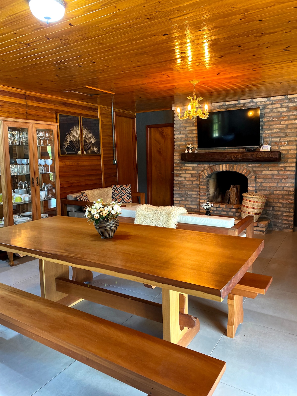 El chalet es una cabaña encantadora y muy acogedora. Tiene capacidad para hasta 6 personas cómodamente; ¡los niños y las mascotas son muy bienvenidos! *Cuenta con 2 dormitorios con cama de dos plazas y 1 sofá cama (sala de estar), bañera, Smart TV, wifi, ropa de cama, toallas, chimenea, cocina con estufa, minibar y otros utensilios de cocina. *No servimos comidas (el desayuno estará disponible por una tarifa adicional). Ven a Recanto do Vale para disfrutar de las maravillas que solo la Serra puede ofrecer.