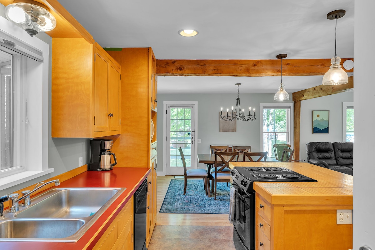 ¡A solo 15 minutos de Jay Peak, disfruta del mejor esquí del este o explora el encanto de Three Pines y encuentra el cruasán perfecto! Ubicada sobre Big Falls State Park, esta histórica casa de poste y viga ofrece el refugio perfecto. Relájate en el porche protegido con el sonido del río o reúnete junto a la chimenea de piedra para disfrutar de noches acogedoras. Esta tranquila casa es ideal para familias o cualquier persona que busque una escapada tranquila rodeada de belleza natural y encanto histórico.