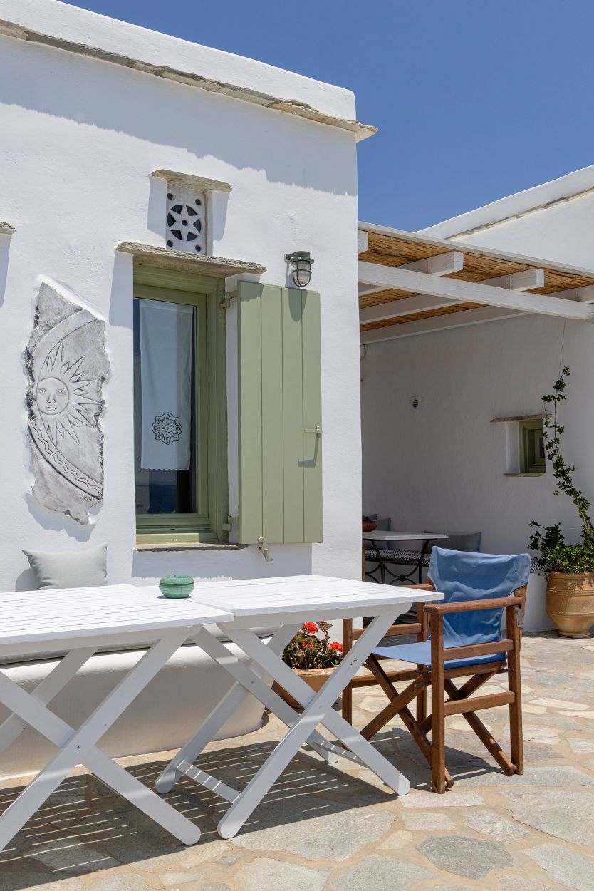 Una casa de campo recién construida, ubicada en la zona de Agios Dimitrios en el lado sureste de la isla de Tinos. Totalmente respetuoso con el medio ambiente y autónomo como la energía eléctrica proviene de los paneles solares. 1 dormitorio principal con cama doble, sala de estar con dos sofás que se pueden utilizar para acomodar a un adulto y un niño. Decoración mínima y relajante con arquitectura tradicional. El jardín está lleno de árboles de temporada y verduras biocultivadas. Disfruta de tu barbacoa privada con vistas increíbles.