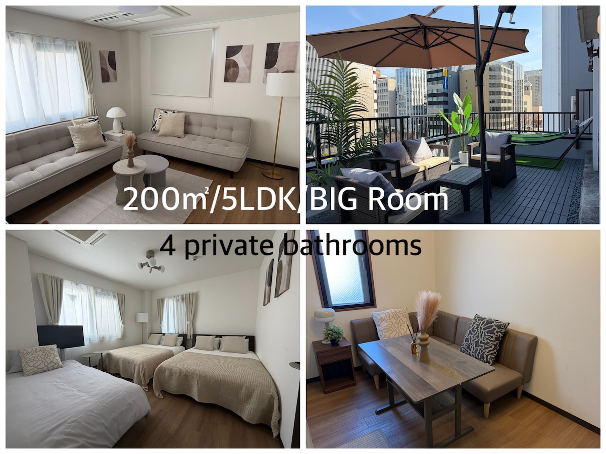 200 m² / A pocos pasos de la estación de Osaka / Habitación grande / Excelente ubicación / Muy buen acceso a Dōtonbori