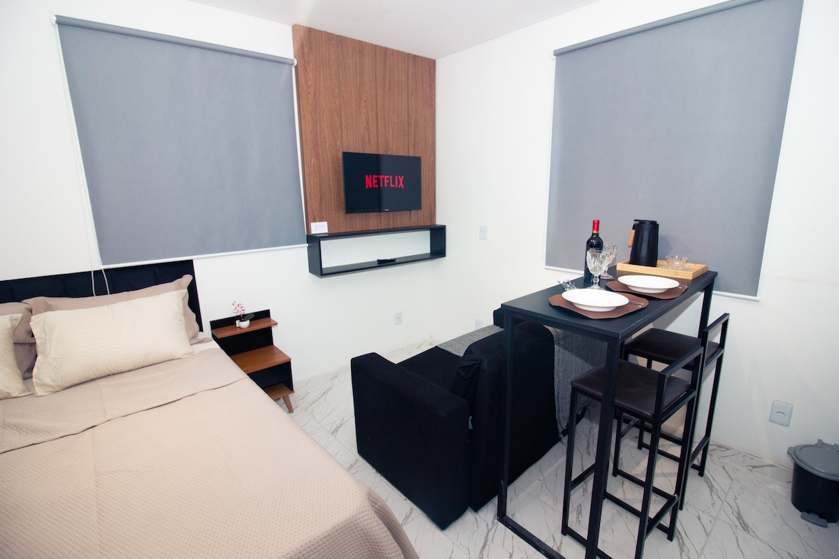Siéntete como en casa en un loft exclusivo en Cityplex Osasco. Diseño moderno, iluminación acogedora y cada detalle diseñado para sorprender. Ideal para parejas, escapadas rápidas o aquellos que buscan comodidad con estilo. Edificio seguro, ubicación superior y ese toque especial que te deleita a tu llegada. Un refugio urbano donde la practicidad y el buen gusto se encuentran. Reserva y vive la experiencia de alojarte con estilo.