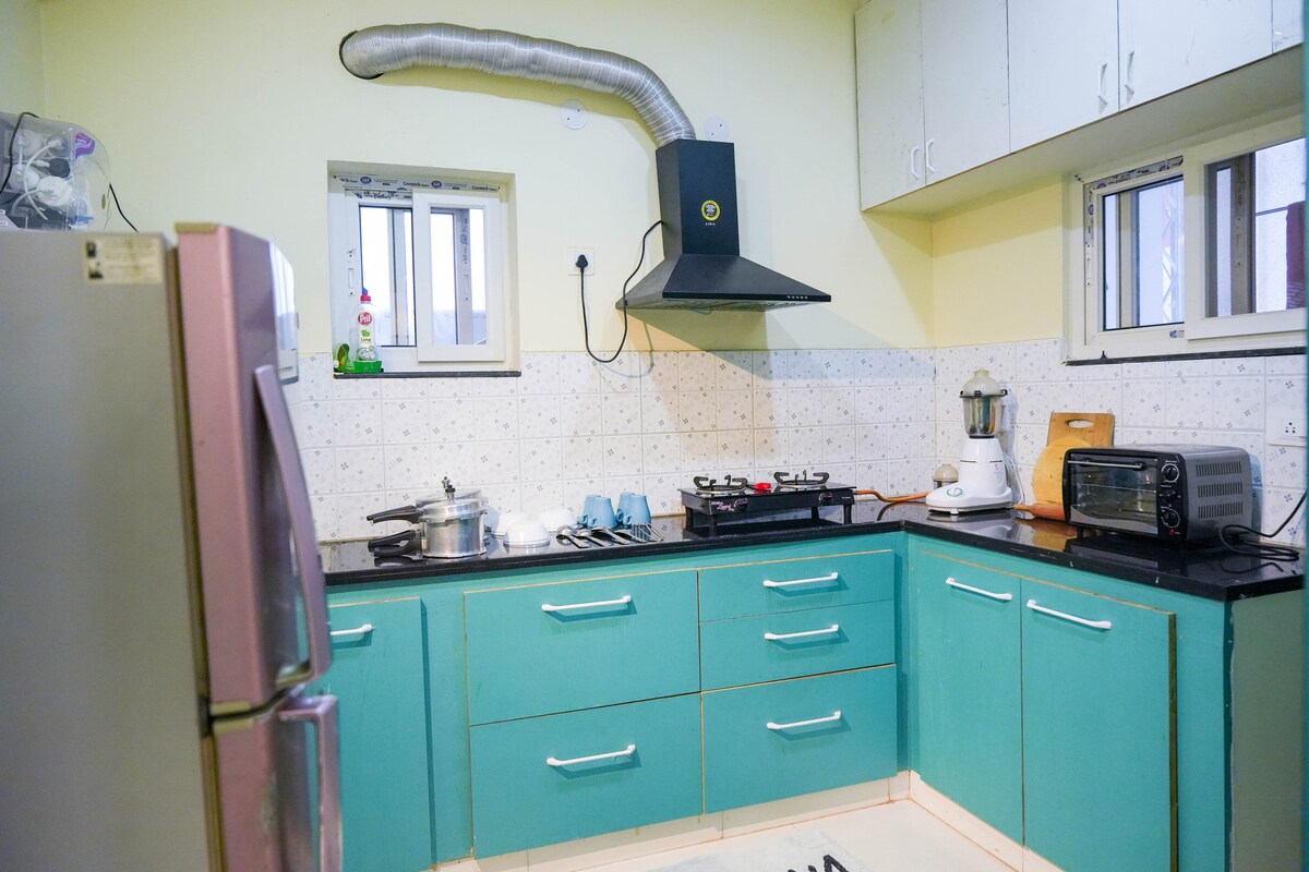 Un espacioso apartamento de 3 BHK ubicado cerca de Allu Studio y el lago Gandipet, perfecto para familias y grupos pequeños. Esta residencia ofrece tres dormitorios bien equipados, cada uno con un baño moderno adjunto y una acogedora sala de estar diseñada para relajarse después de un día de turismo. La cocina y el comedor se completan con una nevera, una estufa de gas y utensilios de cocina, lo que la convierte en una opción perfecta para estancias prolongadas. Con capacidad para hasta 6 huéspedes, lo que garantiza una experiencia memorable y cómoda.