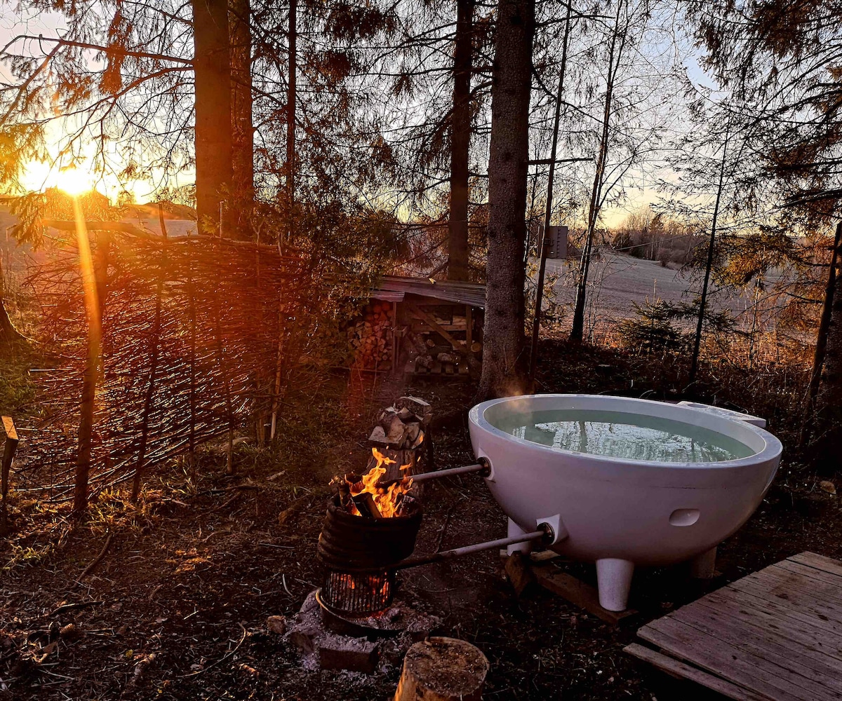 "Skogsbad" se encuentra en un hermoso bosque pequeño con jardín y campos a su alrededor. Una pequeña cabaña con una ventana enorme hace que se sienta como si uno estuviera al aire libre cuando se sienta dentro de la cabina. Es un lugar tranquilo y natural, perfecto para los amantes del yoga y la naturaleza. La cabaña tiene electricidad y calefacción. El baño y la cocina están a 50 metros de distancia