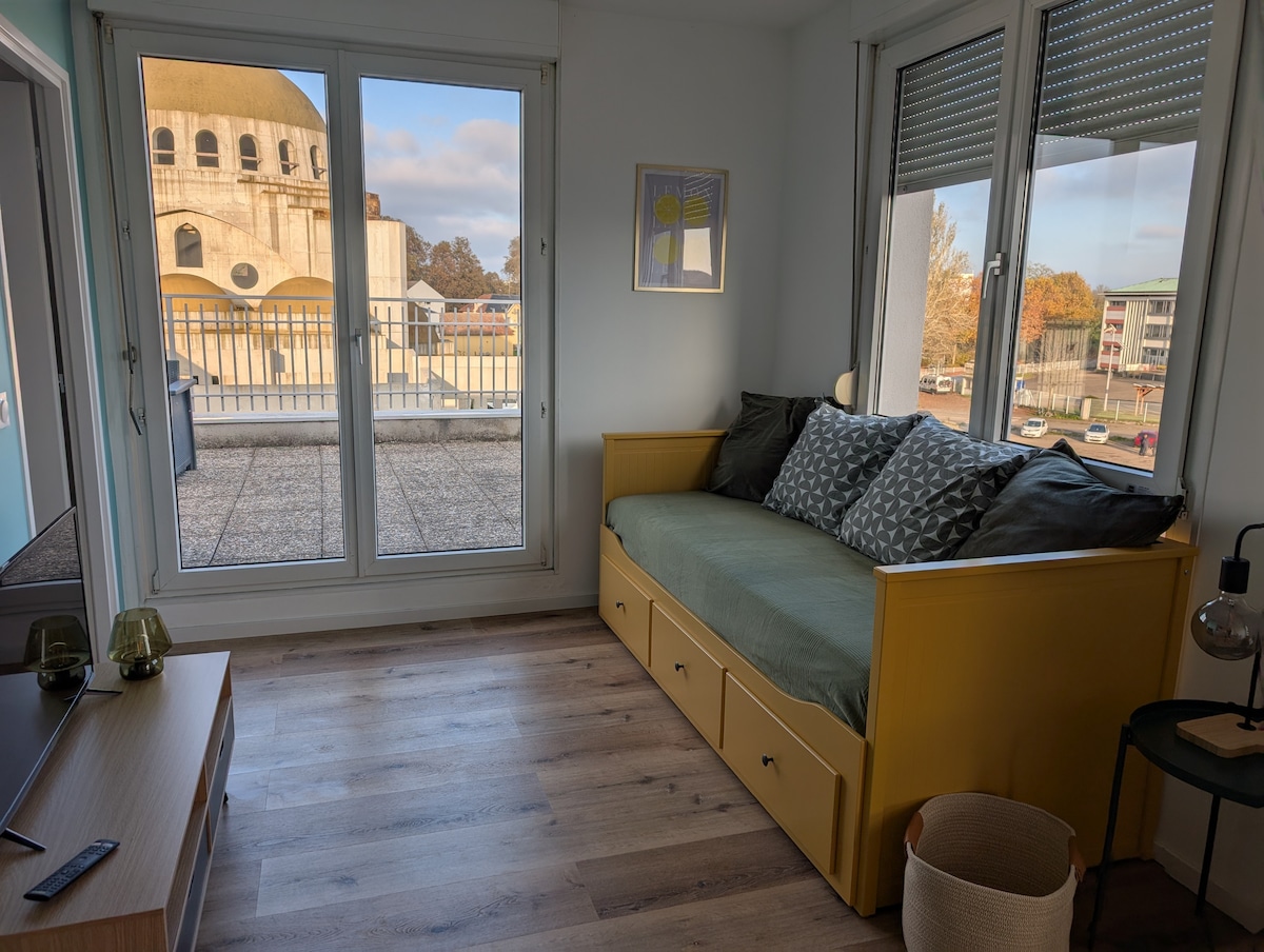 🚋 A 10 minutos del centro en tranvía, este acogedor estudio reformado combina encanto y acabados de alta gama, con hermosas molduras y una terraza con vistas a la catedral. Ideal para disfrutar del mercado de Navidad de Estrasburgo. El tranvía 🚉 al pie del edificio te lleva al centro de la ciudad en 6 paradas. 📍 En las inmediaciones: El Zénith, restaurantes, tiendas, gimnasio, hospitales. 📶 Wifi gratuito y aparcamiento en el lugar. 🎢 Europapark el parque de atracciones más grande de Europa está a 40 minutos.