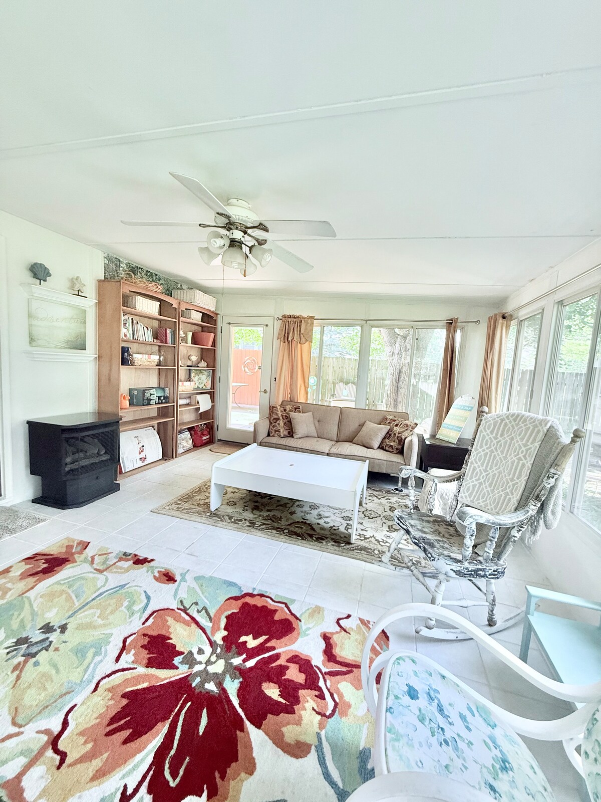 La casa del entrenador se encuentra detrás de nuestra casa. Es una casita privada y separada. Se encuentra cerca del sendero del río y de muchos restaurantes. La planta superior es una habitación grande que tiene 1 cama tamaño queen y 2 camas individuales. La planta superior también cuenta con un baño completo. La televisión de la sala de estar principal en el primer piso no está conectada al cable, pero puedes iniciar sesión en todas tus aplicaciones y tener acceso a noticias a través de YouTube TV, Netflix, Prime, etc.