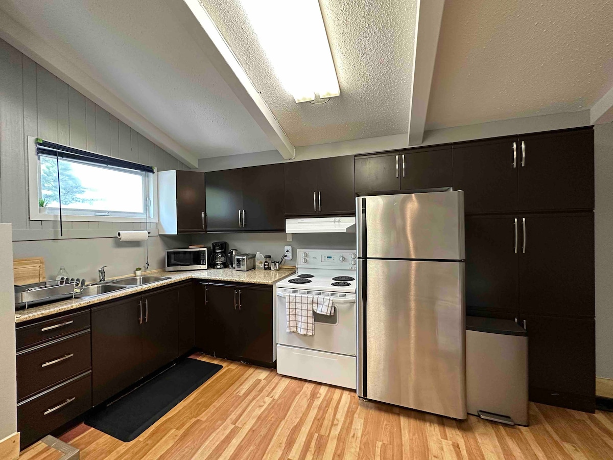 ¡Tu espaciosa casa (adyacente a nosotros) tiene una entrada privada y 5 dormitorios, con capacidad para 12 personas, varias familias bienvenidas! Ubicado en una zona residencial (sin fiestas), con una hora tranquila a las 9:00 p. m. ¡El patio de entrada compartido incluye barbacoa y mesa, sauna de cedro y ducha fría! Patio, chimenea, patio, una mesa de billar en la sala de juegos y una tabla de barajar. Ubicado dentro de las colinas de Gatineau, estamos a poca distancia del corazón del pueblo de Old Chelsea y a 10 minutos en coche de Ottawa o del encantador pueblo de Wakefield.