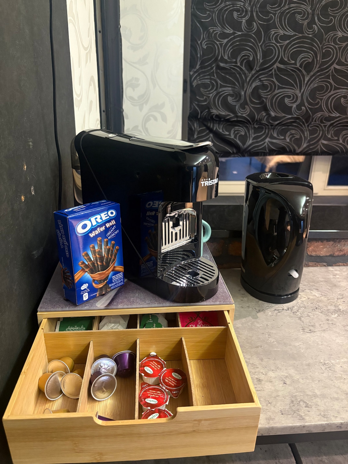 La casa se encuentra en una zona verde y boscosa, el pueblo con tiendas, supermercado y algunos restaurantes está a 3 km. Puedes disfrutar del exterior en un pequeño jardín, donde se oyen los pájaros. La casa tiene una sala de estar con cocina (2 quemadores de gas, nevera, congelador, fregadero, hervidor de agua y cafetera), baño con ducha, inodoro, lavabo y también encontrarás la lavadora. El dormitorio tiene una cama individual y mucho espacio en el armario. Proporcionamos una bicicleta y también puede utilizar la parada de autobús a 500 m de la casa. La casa se encuentra detrás de la casa principal y está completamente separada de ella.