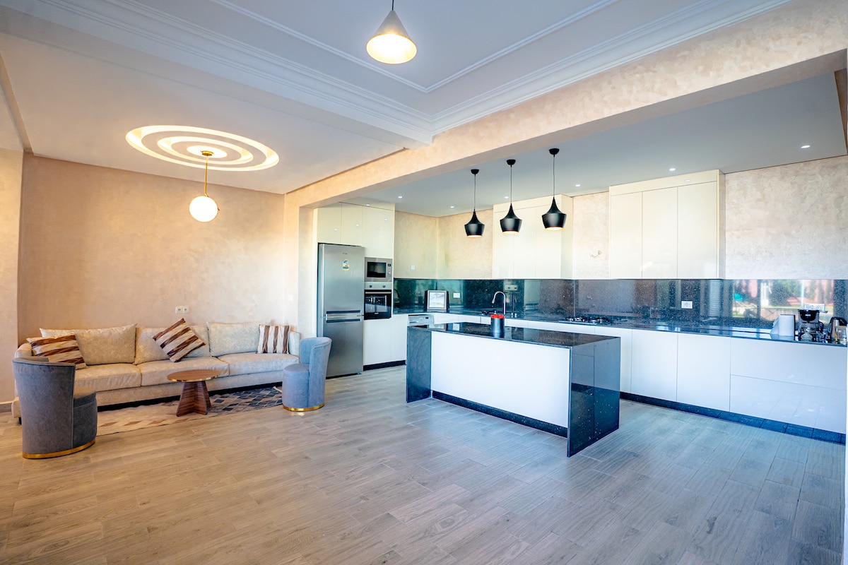 Bienvenido a Moon Villa, en el km 8 de la carretera de Amizmiz, un lugar tranquilo y luminoso donde se disfruta plenamente del encanto de Marrakech. Un lugar pensado para ofrecer una estadía tranquila, cómoda y llena de hermosos momentos. A su llegada, quedará seducido por los generosos volúmenes de esta villa de 400 m². Un amplio salón con un encanto refinado, una cocina abierta y acogedora y espacios bañados de luz que invitan inmediatamente a la relajación.