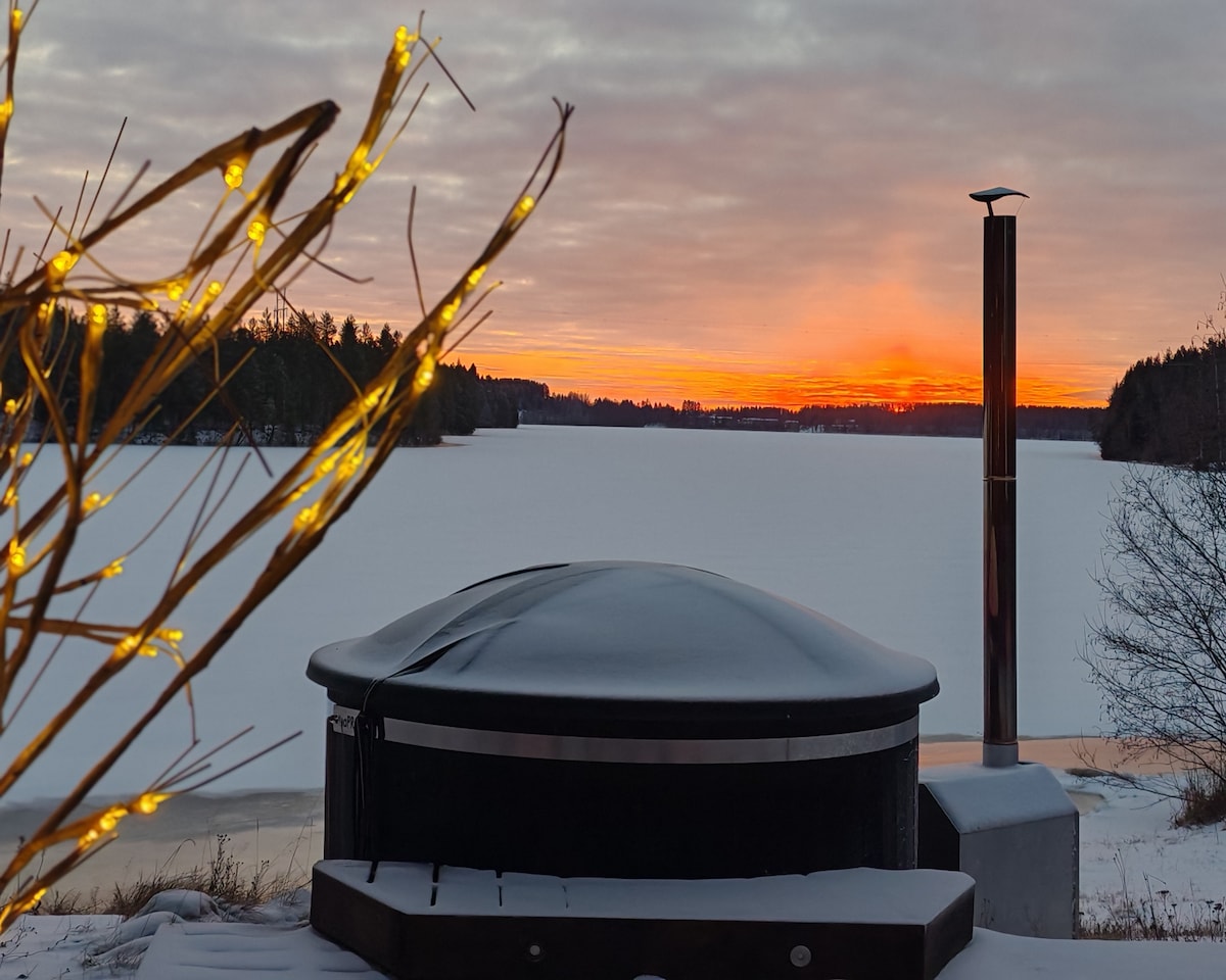 Nueva casa cerca del lago. Lugar tranquilo. A 25 minutos de Oulu. Parada de autobús a 500 m. Cocina, sala de estar, 2 dormitorios, sauna, baño. Posibilidad de esquiar o caminar en el lago o en el bosque. Máximo 4 personas. Jacuzzi +50e/día (límite de -20c). Mínimo 2 días. Posibilidad de recogida en Oulu o Kiiminki. 4 juegos de esquís de fondo y raquetas de nieve de uso gratuito. Puedo organizar trineos de husky, caza de Aurora y otras actividades de invierno. Ei juhlia, max 4 vierasta. Oulu a 25 min Rovaniemi 2,5 h