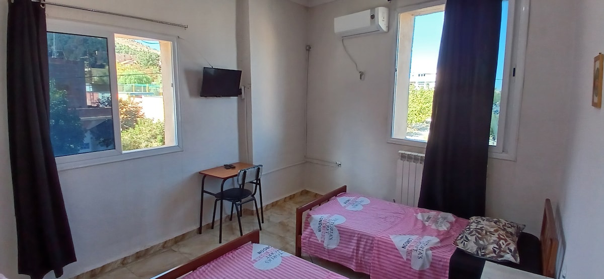 Villa situada en la encrucijada de los lugares históricos de la Argelia romana. Para visitar la villa y ver qué se puede hacer vaya a: (URL HIDDEN) Hay 2 magníficas habitaciones equipadas con aire acondicionado y calefacción para el invierno, amplio salón