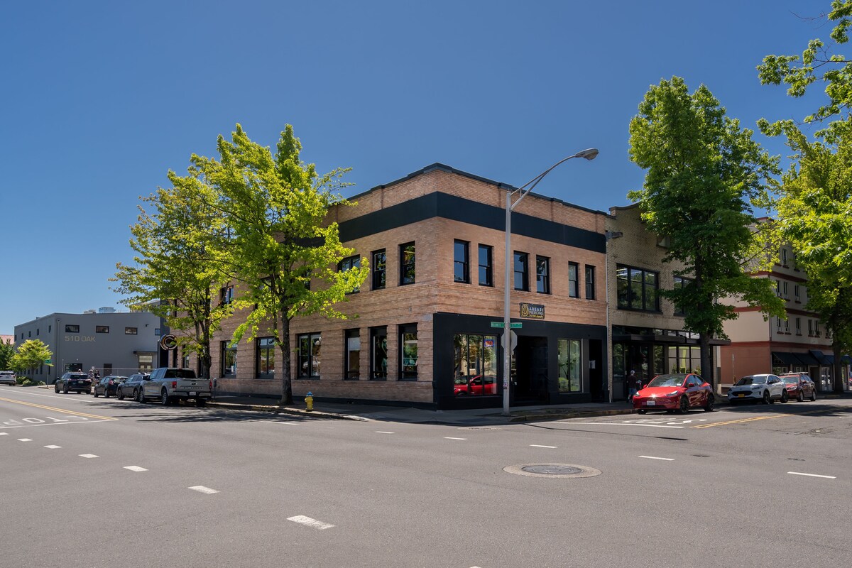 Dog and 420 friendly, Upstairs Apartment over a dispensary with a great view of Blair Blvd across the street from a bar. Hay entrada fuera de la calle y estacionamiento fuera de la calle, ubicado en el centro del ajetreado barrio de Eugene Whiteaker. Nuestra cuadra alberga muchos restaurantes, bares únicos con locales de música y tiendas. A poca distancia a pie del río. ¡Hay bicicletas azules para alquilar a la vuelta de la esquina, una parada de autobús justo enfrente! El vecindario es el hogar de muchos lugareños y turistas hermosos, salvajes y bulliciosos.