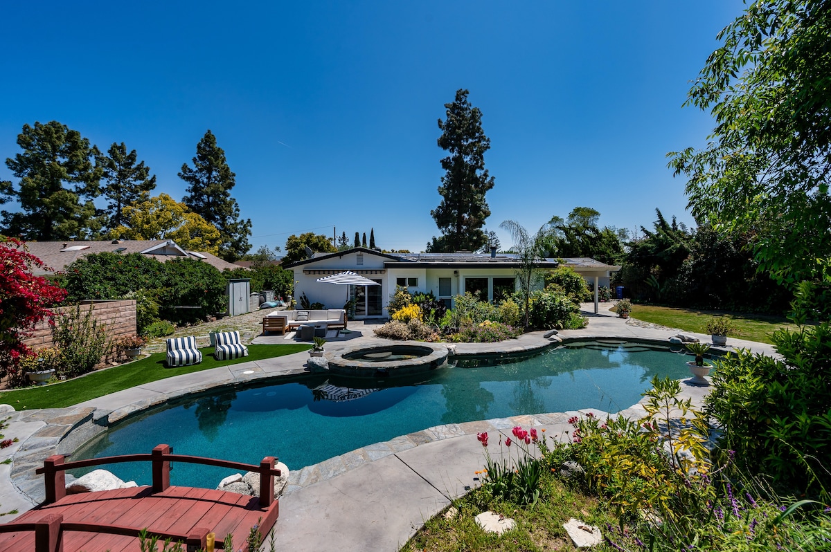 ¡Te damos la bienvenida a Eichler House en Thousand Oaks! Esta casa moderna de mediados de siglo cuenta con piscina, jacuzzi, chimenea y barbacoa incorporada, perfecta para entretenerse o relajarse. Totalmente remodelado con comodidades modernas, cuenta con un atrio, un plano de piso abierto y ventanas del piso al techo para una vida interior y exterior perfecta. Ubicado en un lote privado que da al espacio abierto, ofrece tranquilidad a pocos minutos de rutas de senderismo, tiendas y a 30 minutos de la playa.