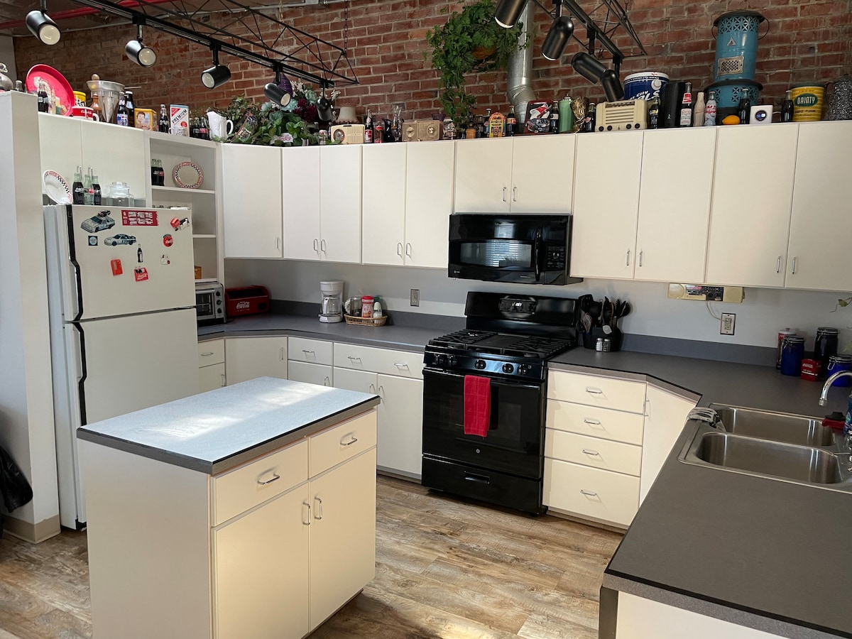 Verdaderamente único. Propiedad histórica convertida en un loft espacioso y acogedor en el corazón del sur de Kansas City. Este espacio de 100 años de antigüedad (a 5 minutos de la granja HS Truman. Habló en este escenario en su primera campaña política) ha sido completamente renovado con encimeras de hormigón, techos abovedados maravillosamente, baño enorme, espacio de trabajo incorporado e incluso una divertida habitación para niños. Deja que la luz natural se filtre a través de las enormes ventanas o cierra las cortinas y atenúa las luces:) ¡Esperamos que lo disfrutes tanto como nosotros!
