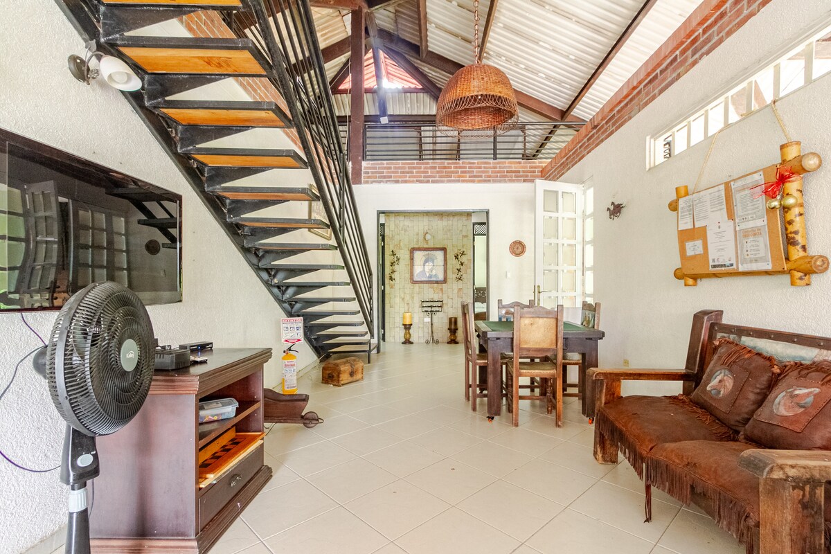 Escápate de la rutina y relájate en nuestra casa rodeada de amplios jardines y exuberantes zonas verdes. Disfruta de una experiencia completa con una cancha de fútbol 9 iluminada, cancha de vóley playa, y 2 acogedores kioskos perfectos para asados y momentos de descanso. Ideal para grupos grandes, nuestra propiedad tiene capacidad hasta para 30 personas, asegurando comodidad y diversión para todos. ¡Reserva ahora y haz de tu estadía un recuerdo inolvidable!
