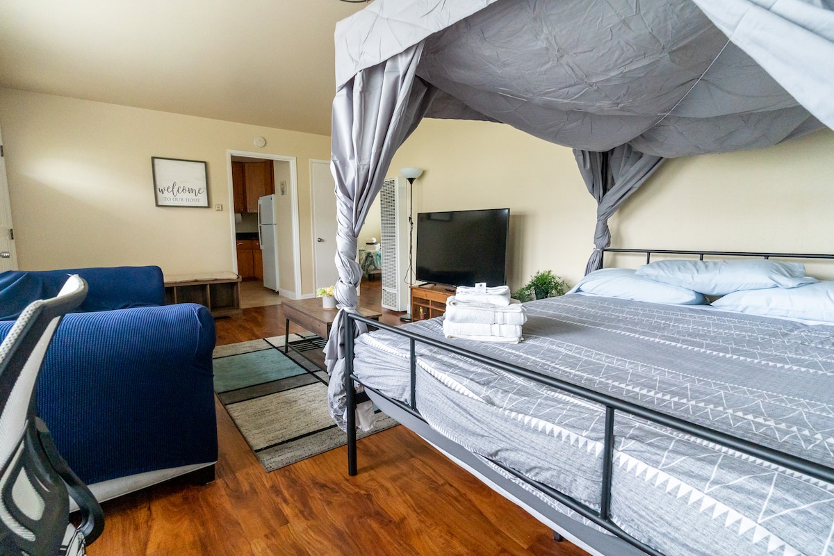 ¡Acogedor y moderno apartamento de 1 dormitorio con vistas al mar en el patio trasero!