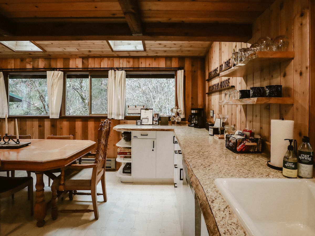 ¡NUEVO ALOJAMIENTO! - ¡Ubicación, ubicación, ubicación! La cabaña de vacaciones se encuentra en el circuito privado cerrado de la comunidad de Elkhorn sin tráfico. Es ideal para las necesidades de hasta 7 personas, con 2 parejas adultas en dormitorios tamaño queen y hasta una combinación de 3 niños/adultos en las 3 camas de estilo litera en el área del loft abierto. Juegos, fogata, alce Roosevelt, vistas panorámicas, etc... el escenario perfecto para tu escapada a la montaña. Residiendo en el centro de Packwood, todo lo que necesitas está a pocos pasos de distancia.