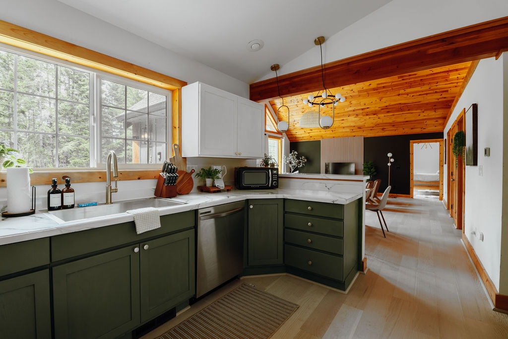 Construida a medida en 2020 por el anfitrión con muchos detalles de madera hechos a mano para dar esa sensación de montaña. Ven a caminar, pescar, esquiar o simplemente relajarte. A veinte minutos de la entrada de Stevens Canyon al monte Rainier y a veinticinco minutos de la zona de esquí White Pass. La pequeña y pintoresca ciudad de Packwood está a solo 5 minutos con restaurantes, tiendas de comestibles y una cervecería. La cabaña está enclavada en el bosque al final de una calle sin salida en un barrio tranquilo y con wifi de cable rápido. A pocos pasos de Skate Creek. Breve caminata hasta Skate Creek Park.
