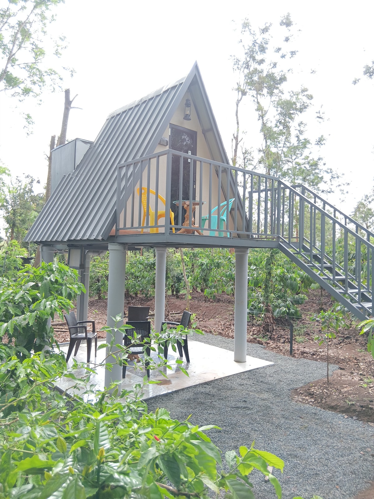 Bienvenido a nuestro tranquilo chalet de un dormitorio, ubicado en el borde de nuestra plantación de café. Perfecto para parejas o familias pequeñas, este refugio aislado a 200 metros de la granja del guardabosques garantiza la privacidad. Cuenta con un moderno dormitorio en suite y un balcón privado con vistas serenas al estanque. Sumérgete en la tranquilidad, disfruta del café casero y descubre la vida de la plantación en paseos tranquilos. PD: El estanque natural que ves delante del chalet no es apto para nadar. Es peligroso entrar debido al barro y la profundidad