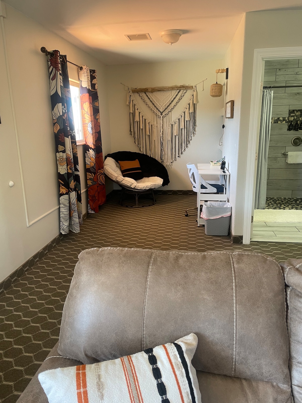 ¡Este es un apartamento tipo estudio recién remodelado con una CAMA TIPO KING! Está situado en el segundo piso de un edificio de dos pisos. Servicios: una cama tamaño king, un sofá biplaza reclinable, una placa de vidrio, ollas y sartenes, platos y platos, cubiertos y cristalería, cafetera, olla de barro, tostadora, internet, TV de 55 pulgadas, lavadora y secadora de tamaño completo y un patio con sillas. A poca distancia a pie del centro de Page. ¡A solo millas de Horseshoe Bend, Antelope Slot Canyon y el hermoso lago Powell!