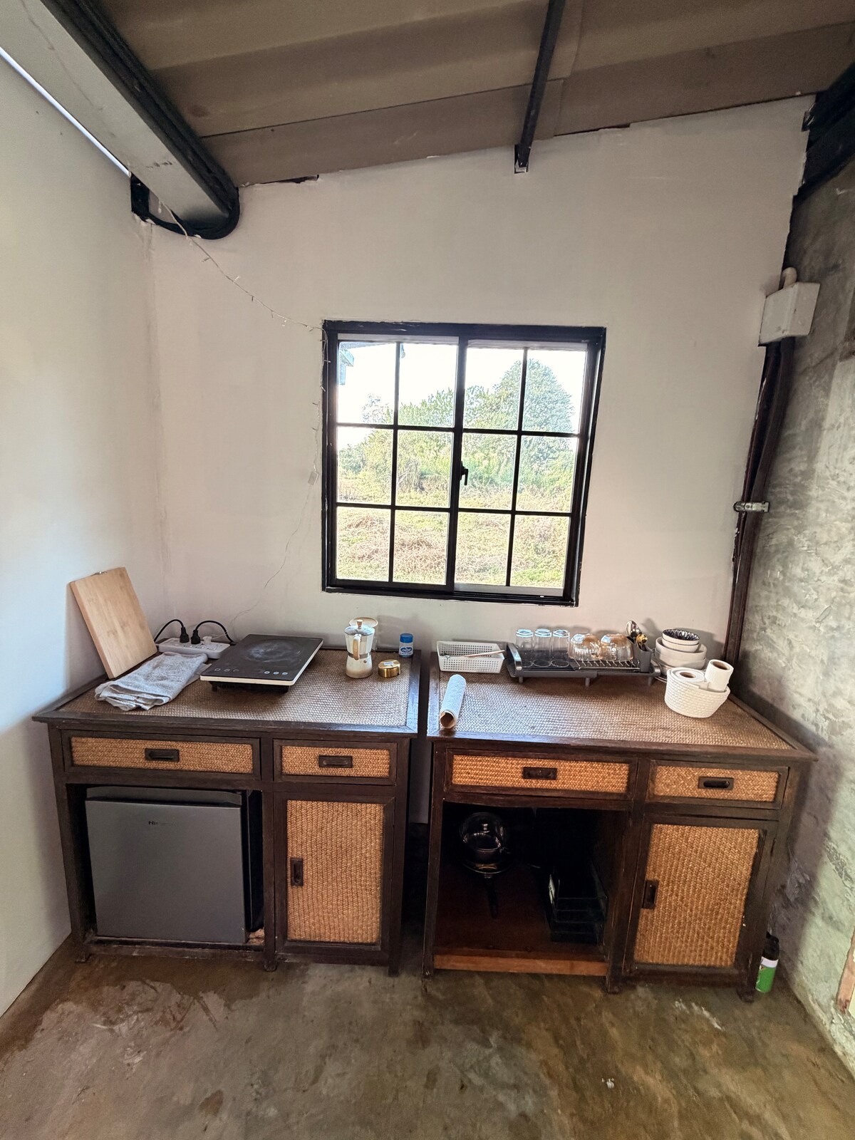 Alójate en el único alojamiento geodésico privado de Pai, situado en una propiedad tranquila rodeada de vistas abiertas a las montañas y a la naturaleza. Con solo dos domos en el lugar, los huéspedes comparten el acceso exclusivo a una piscina natural de 16 metros y a una espaciosa sala al aire libre de 8 metros. No se permiten visitantes externos, eventos ni fiestas. Cada domo cuenta con aire acondicionado, baño privado moderno y una pequeña cocina básica (fregadero, nevera, hervidor de agua). Diseñado para parejas y viajeros tranquilos que buscan privacidad, espacio y una estancia única en Pai.