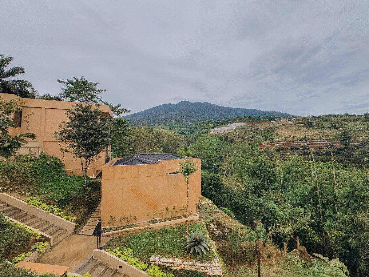 Villa kigai con experiencia en granja de café y flores – Rodeada de naturaleza y vistas a la montaña. Escápate a un refugio tranquilo ubicado en un encantador pueblo en la base del monte Salak, con vistas impresionantes del monte Gede, el monte Pangrango y las brillantes luces de la ciudad por la noche. Nuestra villa ofrece una estancia única donde la naturaleza, la comodidad y la cultura local se unen, con una experiencia práctica de cultivo de café y flores.