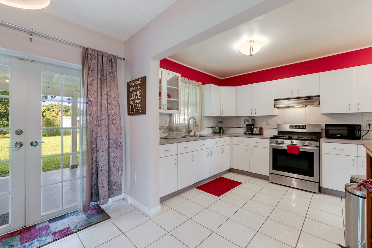 Amplia casa en Cutler Bay con 4 habitaciones, 2 baños, 5 camas, cocina completa, lavadora y secadora. Disfruta del gran patio ideal para deportes, barbacoas o relajarte bajo el sol. Ubicada en una zona tranquila cerca de tiendas, parques y Black Point Marina. Perfecta para familias o grupos que buscan comodidad, privacidad y una verdadera experiencia del sur de Florida. Incluye estacionamiento gratis, Wi-Fi rápido y Smart TVs.